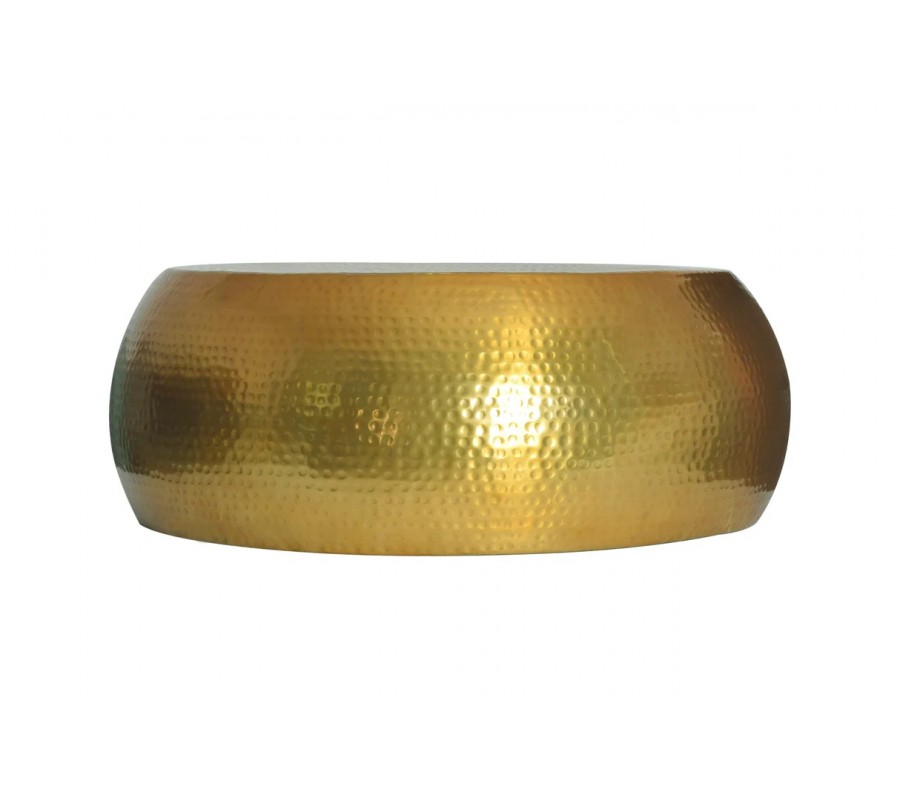Designový orientální kulatý konferenční stolek Hammerblow ve zlaté barvě z kovu s plastickým vybíjeným zdobením 80 cm