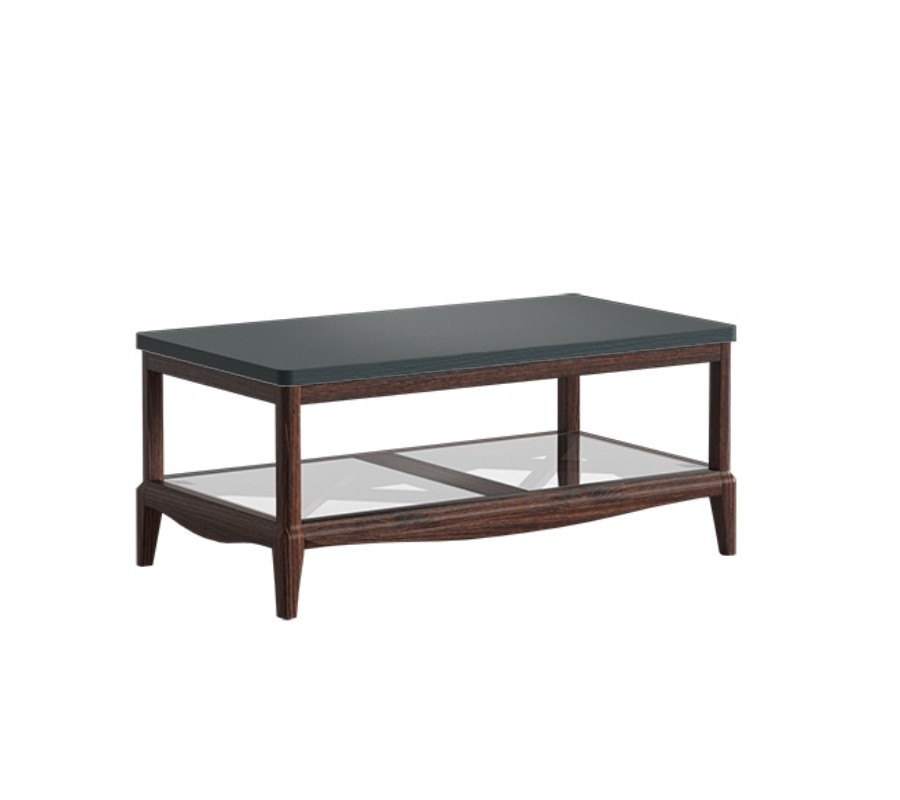 Luxusní venkovský obdélníkový konferenční stolek Quebec s policí se skleněnými výplněmi 110 cm