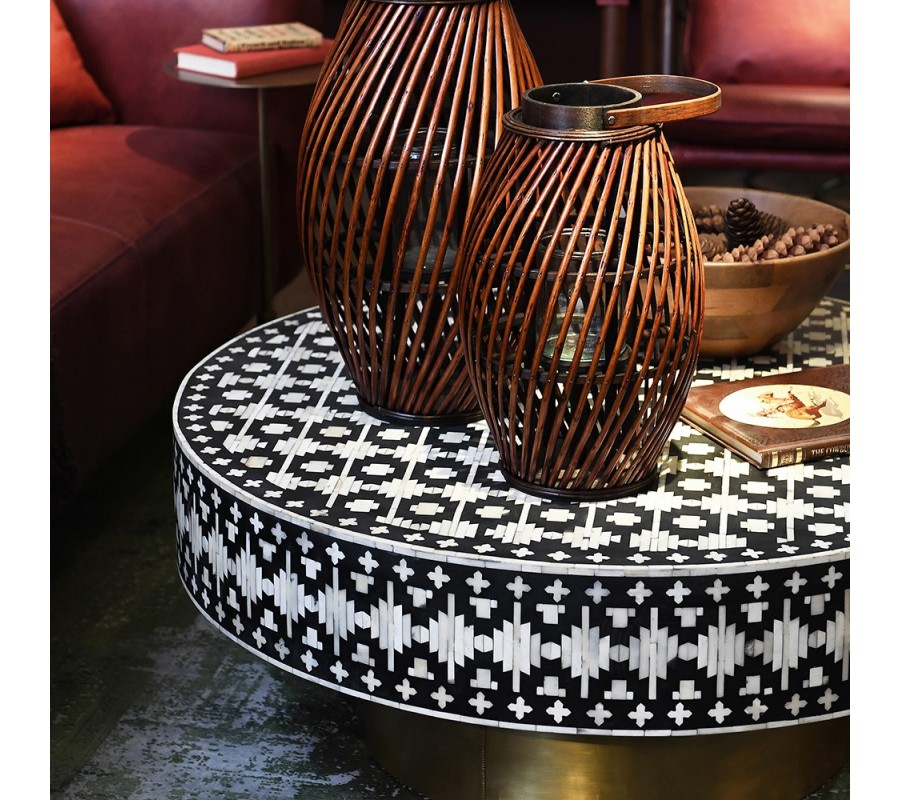 Konferenční stolek se ideálně uplatní v obýváku jako centrální prvek před pohovkou, v lounge prostoru, pracovně nebo v reprezentativním salonku. Výborně zapadne do etno, orientálních, boho a eklektických interiérů, ale v minimalistickém prostředí vynikne jako výrazný kontrastní akcent. Nejlépe se kombinuje s nábytkem a textiliemi v neutrálních odstínech béžové, krémové či šedé, s přírodními materiály jako len, bavlna nebo kůže as doplňky z mosazi, zlata či černého kovu. Výsledkem je harmonický, stylový prostor s nádechem exotiky a nadčasové elegance.