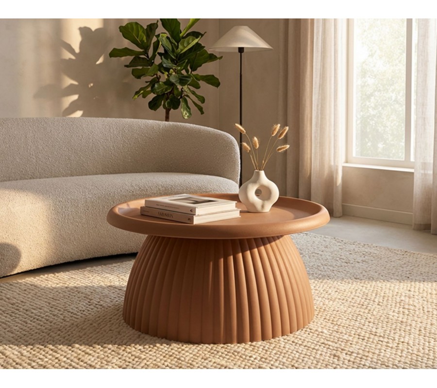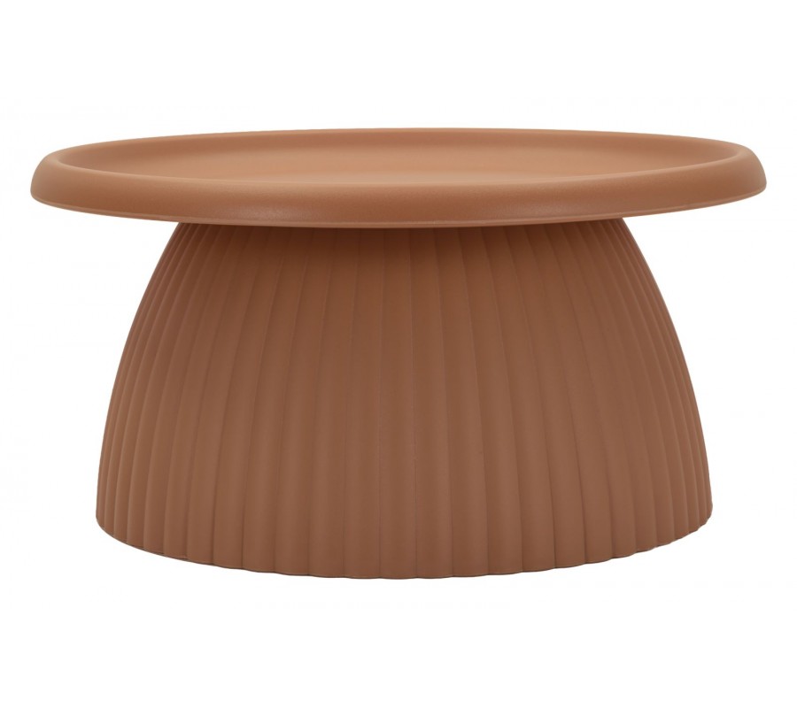 Designový moderní kulatý konferenční stolek Corralejo s mohutnou žebrovanou nohou v terakotové hnědé barvě 70 cm
