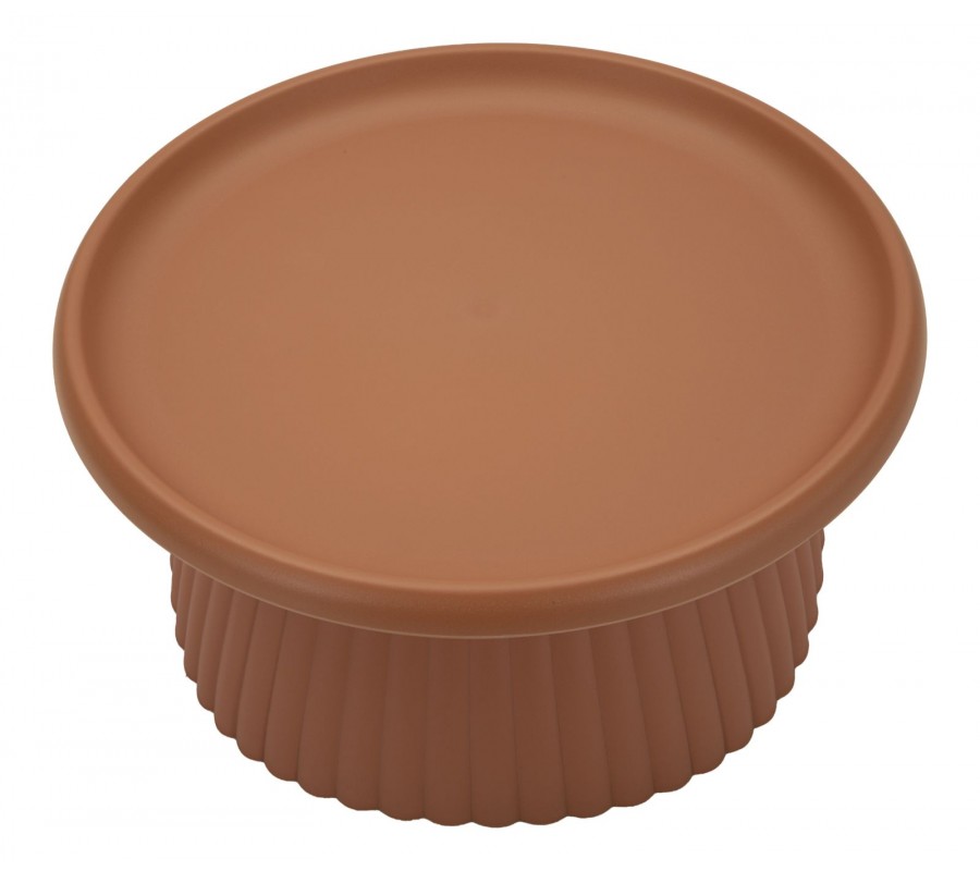 Stolek je vyroben z pevného plastu, který mu poskytuje odlehčenou váhu, nenáročnou údržbu a výbornou odolnost vůči vlivům každodenního používání. Provedení v bohaté terakotově hnědé barvě s oranžovými podtóny působí teplým a útulným dojmem.
