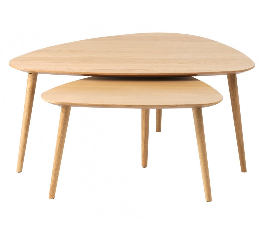 Skandinávský set dvou konferenčních stolků Halia v hnědé barvě v trojúhelníkovém tvaru s dubovým vzhledem 100 cm