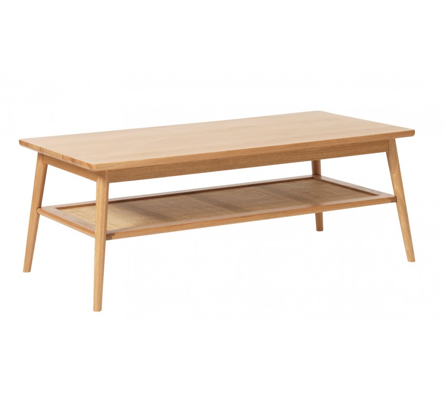 Designový skandinávský obdélníkový konferenční stolek Aarhus v dubovém hnědém provedení s ratanovou policí 120 cm