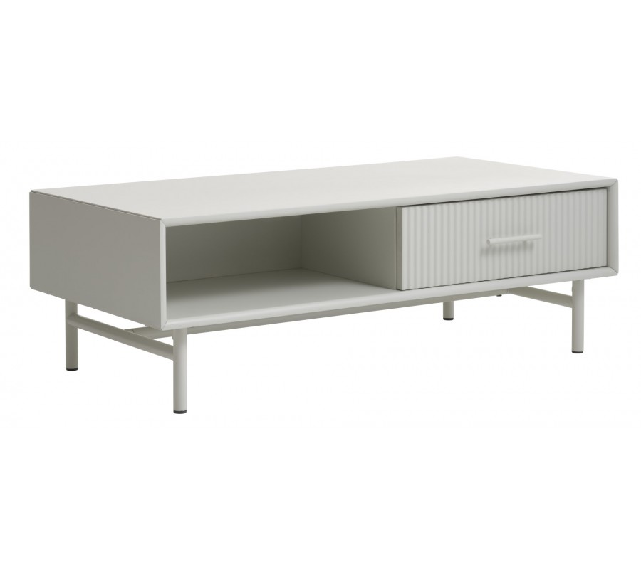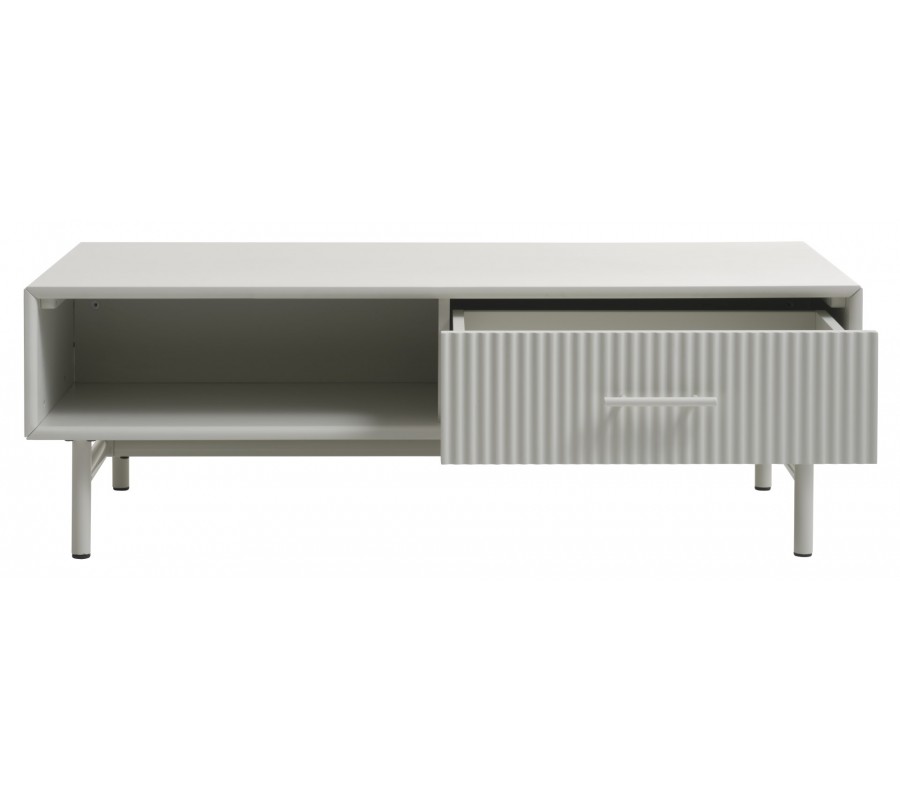 Moderní obdélníkový konferenční stolek Hvidea s policí a zásuvkou s žebrovaným dekorem ve světlem béžově šedém odstínu 120 cm