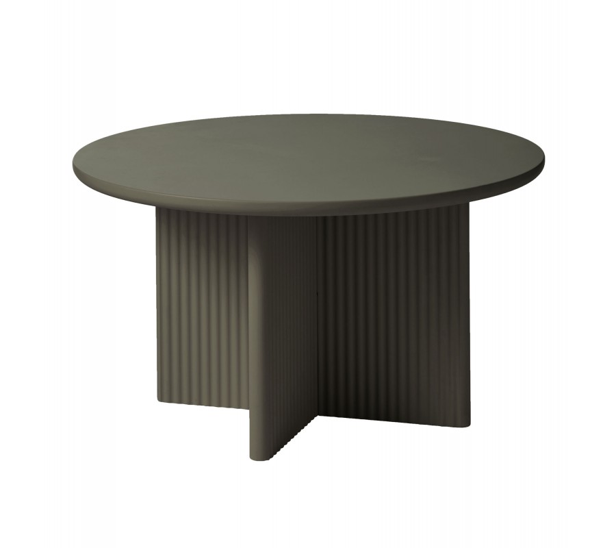 Moderní kulatý konferenční stolek Hvidea s podstavou ve tvaru kříže s žebrovaným dekorem v olivové zelené barvě 80 cm