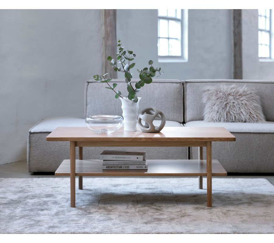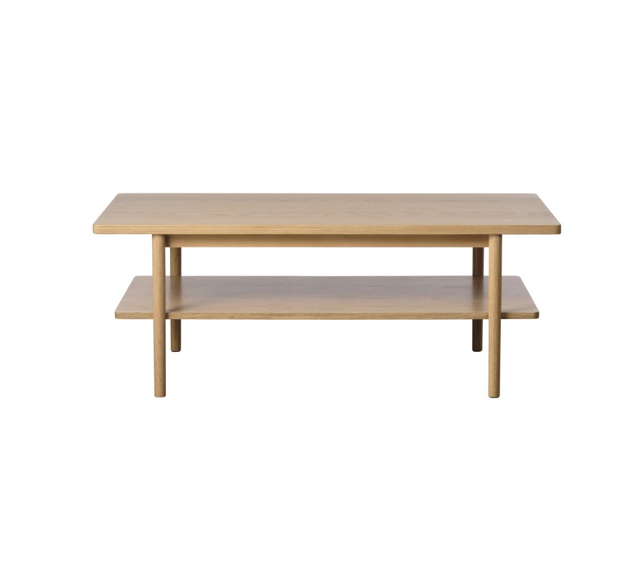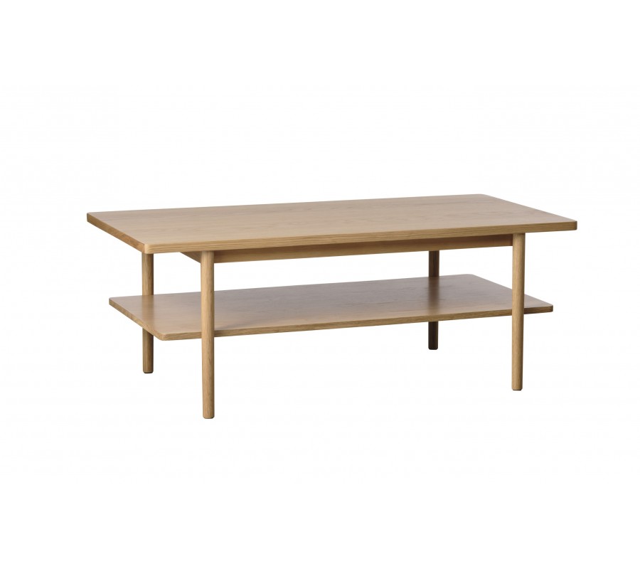 Skandinávský obdélníkový konferenční stolek Petrona s policí ve světlém hnědém dubovém provedení 120 cm