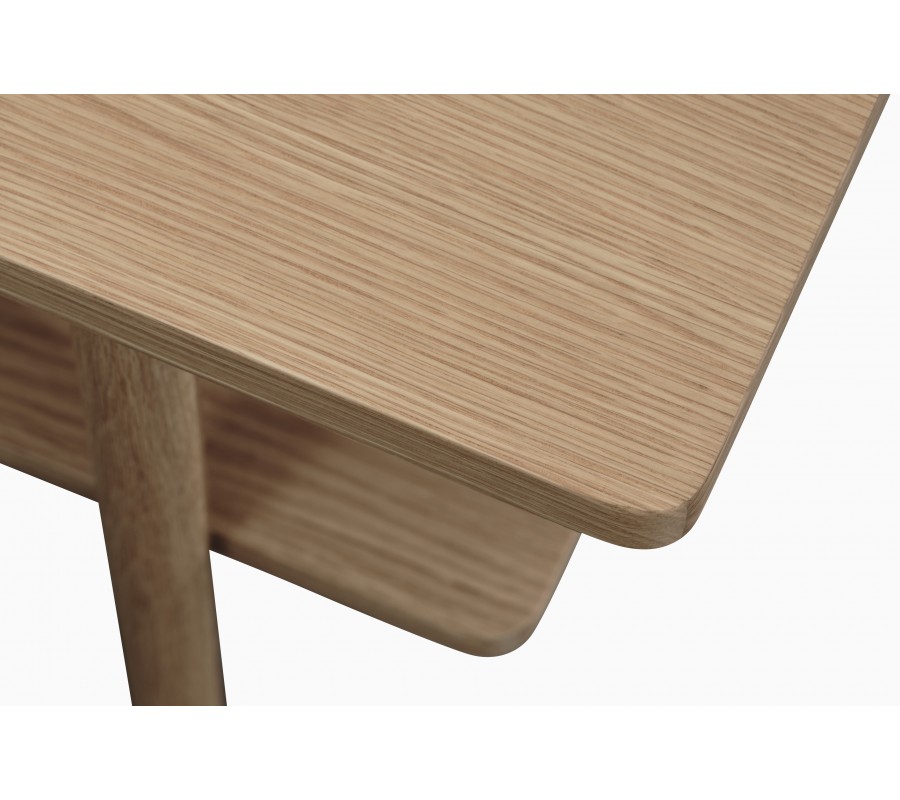 Stolek je vyroben z dubové dýhy, kombinované s MDF. Propůjčuje mu typický světlý hnědý vizuál s přiznanou pravidelnou kresbou letokruhů. V prostoru vytvoří příjemnou hřejivou přírodní atmosféru, charakteristickou pro skandinávský styl.