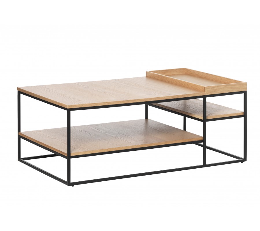 Konferenční stolek Soldo představuje luxusní propojení moderního minimalismu s industriálními prvky. Světlé dubové dřevo vnese do obývacího pokoje útulnou atmosféru, přičemž oceníte i praktický otevřenýúložný prostor.