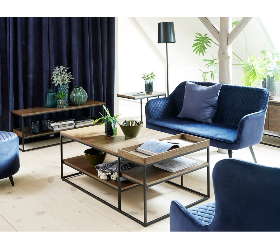 Konferenční stolek Soldo je luxusním spojením moderního minimalismu a industriální estetiky. Dubové dřevo přinese do prostoru pocit tepla a oceníta i bohatý úložný prostor.