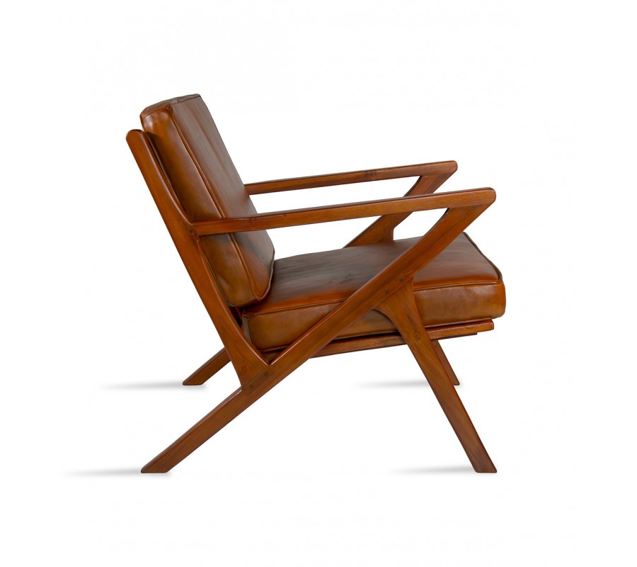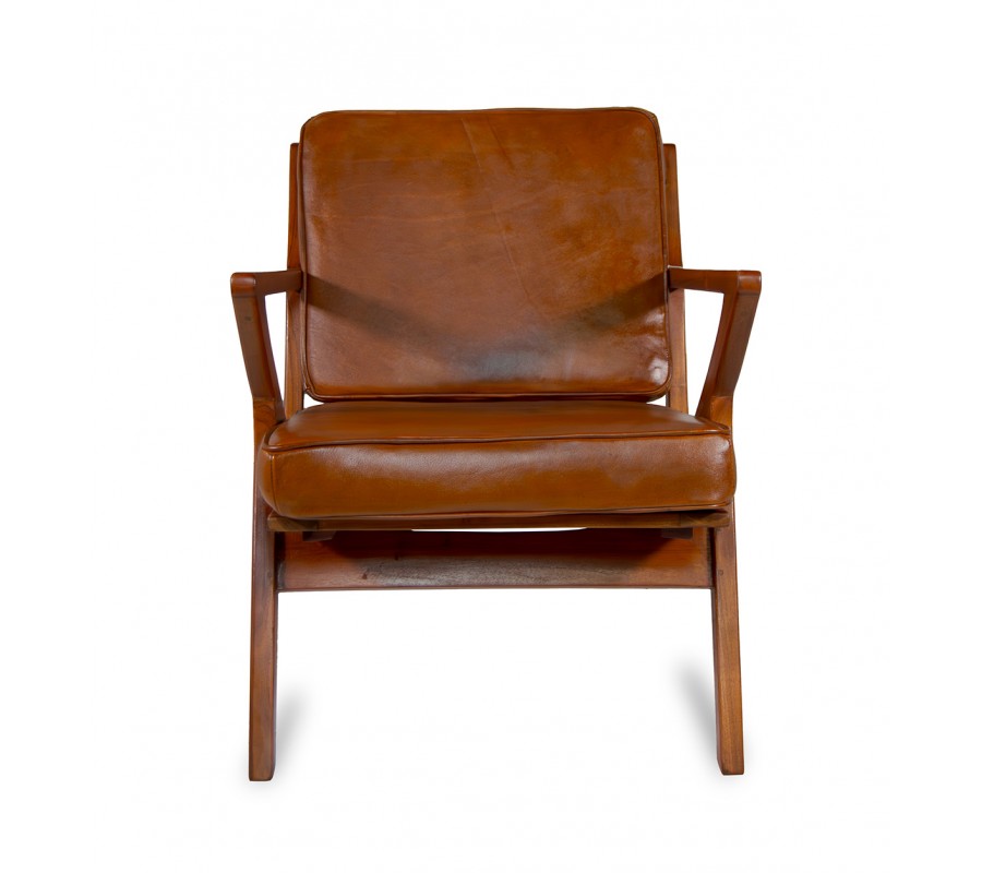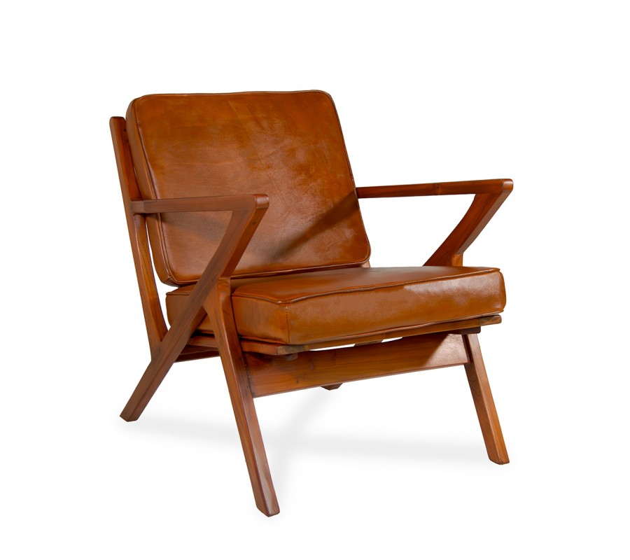 Pohodlné sezení vám zaručí dvojice čtvercových polštářů na sezení a opření zad. Polštáře lze jednoduše z křesla sundat, což oceníte například při úklidu. Potah je vyroben z pravé kůže v hlubokém hnědém odstínu s nádechem červené, který výborně koresponduje s teplým charakterem dřeva a dodává křeslu luxusní vzhled.