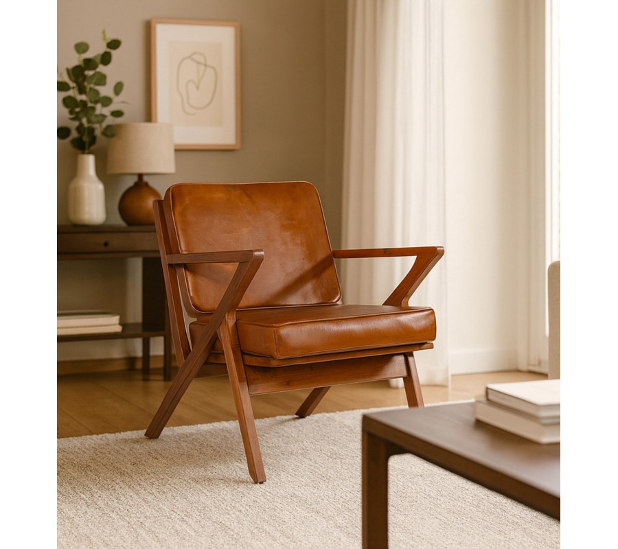 Kožené křeslo Angeluo váš okouzlí svým jedinečným rámem, který spojuje geometrické tvary s krásou přírodního dřeva. Oceníte také odnímatelné polštáře, které vám usnadní údržbu nábytku.