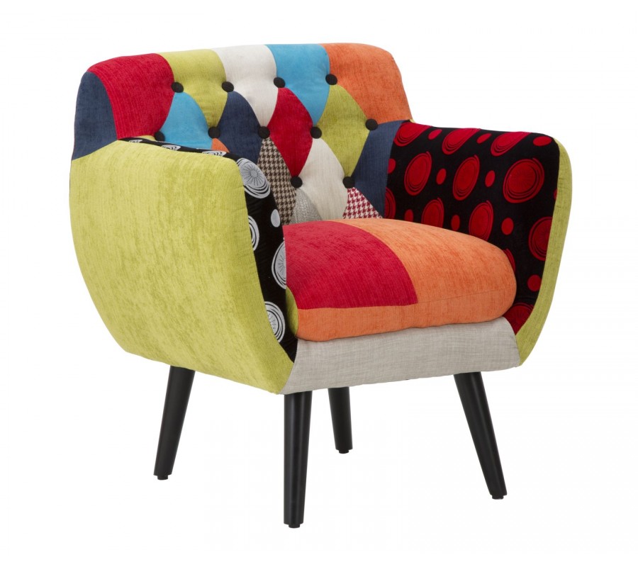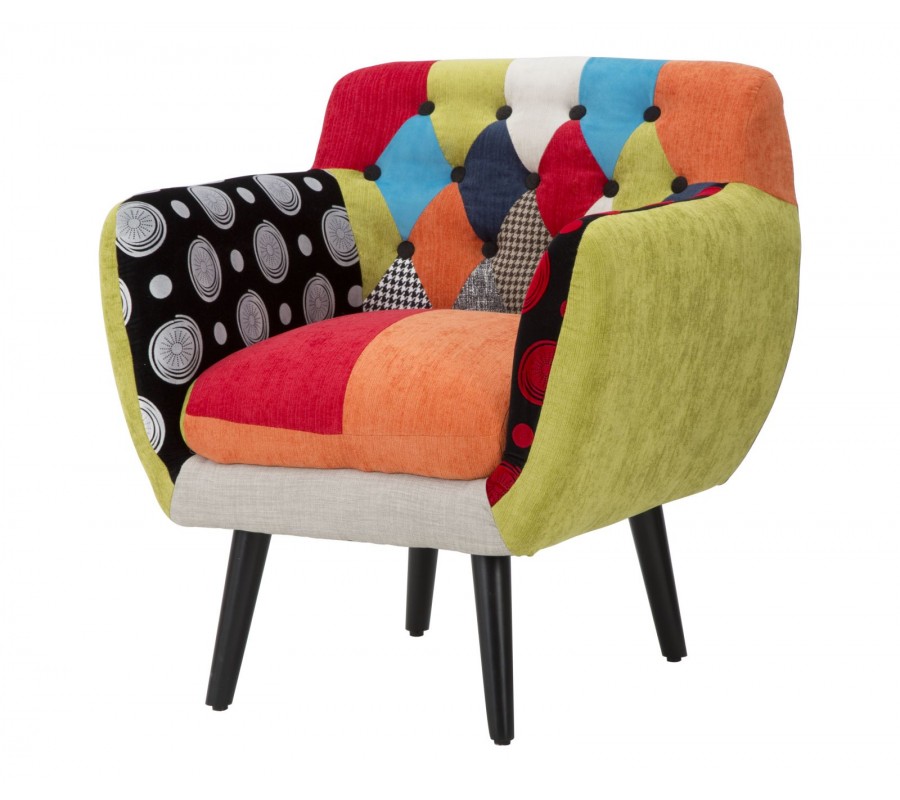 Designové moderní klubové křeslo Burlone s vícebarevným patchworkovým potahem s prošíváním s kulatými knoflíky 71 cm