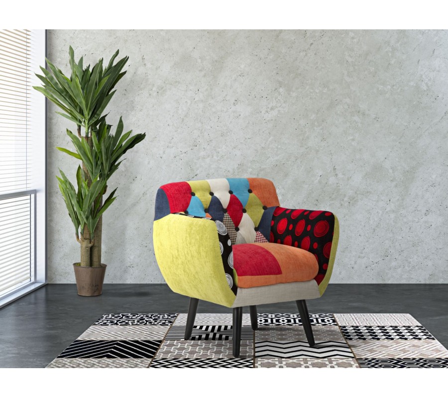 Křeslo Burlone můžete zkombinovat s jednobarevnou sedačkou, u které naplno vynikne jeho dekorativní potenciál. Patchworkový vzor se pojí s pocitem domáckosti a útulnosti, který přinese do moderního obývacího pokoje či dětského pokoje.