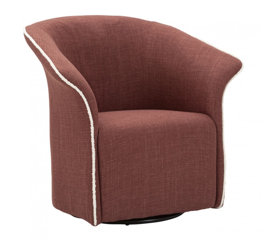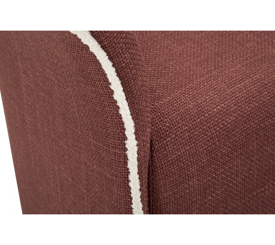 Moderní klubové křeslo Merlon s otočnou funkcí a černou kovovou podstavou je praktickým a designovým kouskem, který se hodí do různých interiérů. Jeho textilní potah v terakotově hnědé barvě dodává prostoru útulnost a sofistikovaný vzhled. Bílý prošívaný pás, který lemuje opěradlo a područky, vytváří výrazný kontrast a dodává křeslu stylový akcent.