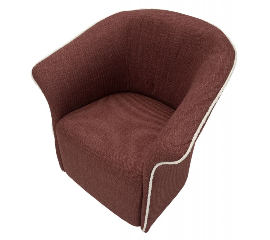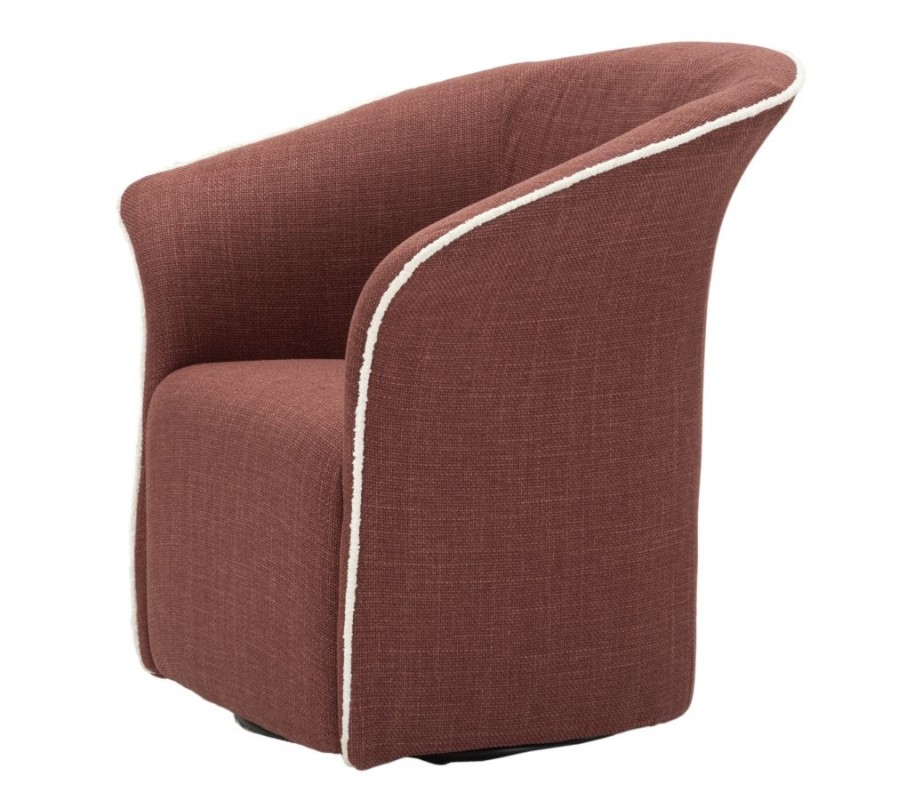 Moderní otočné klubové textilní křeslo Merlon v terakotově hnědé barvě s bílým prošívaným lemem 83 cm