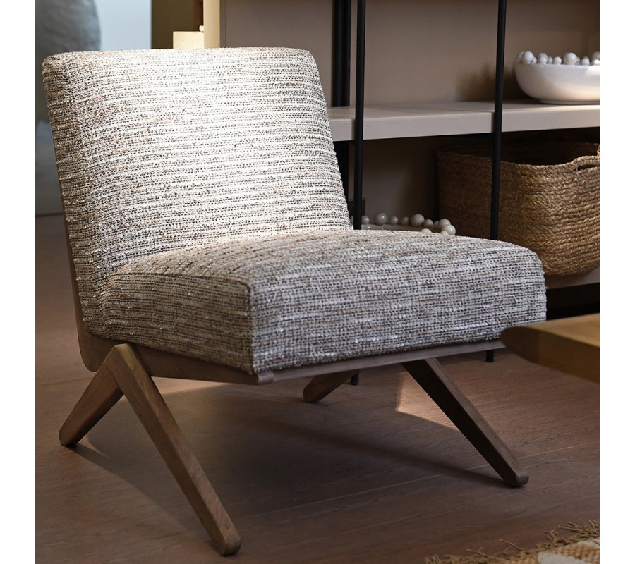 Křeslo Axis v sobě spojuje retro eleganci a uvolněný komfort. Jeho nízký tvar se širokým sedadlem působí ležérně, ale zároveň stylově a promyšleně. Potah z kvalitní tkaniny s podílem viskózy v stínech šedé, hnědé a béžové vytváří jemněstrukturovaný efekt, který dodává povrchu hloubku a vizuální teplo.