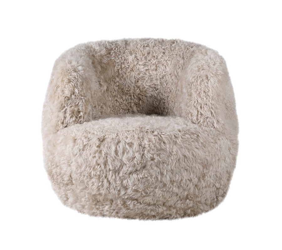 Luxusní glamour otočné křeslo Aurora působí mimořádně útulně a zároveň extravagantně. Kulatý tvar s měkkým přechodem sedací části do bočních a zádové opěrky vytváří elegantní U tvarování, které přirozeně obepíná tělo a poskytuje výjimečné pohodlí. Kožešinový potah s krátkým vlasem v krémové barvě dodává křeslu výraznou měkkost, vizuální teplo a exkluzivní glamour charakter.