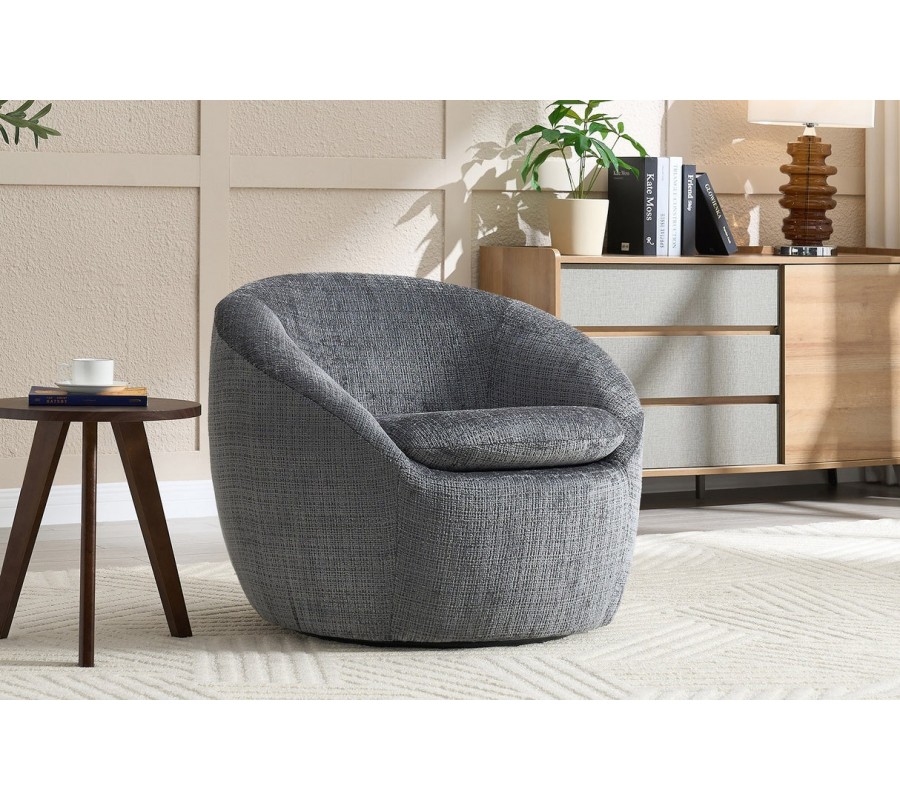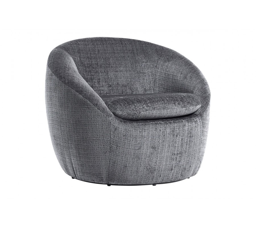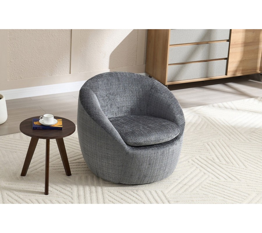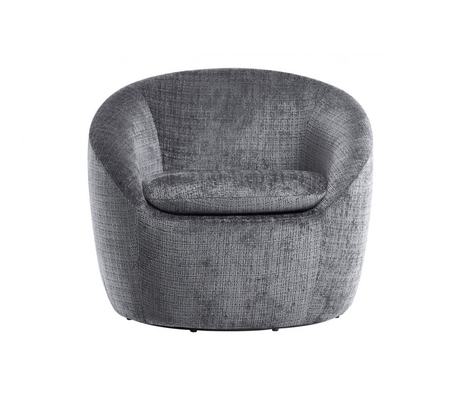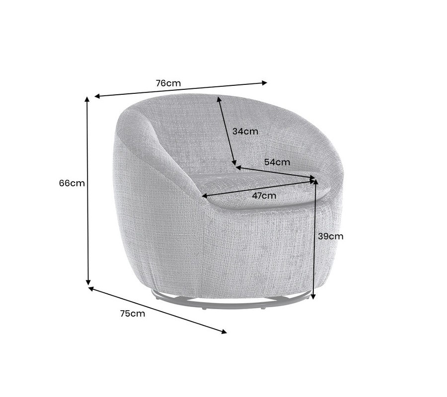 Stylové art deco kulaté otočné křeslo Elian s šedým strukturovaným potahem 76 cm