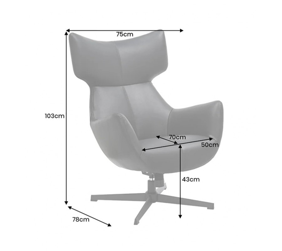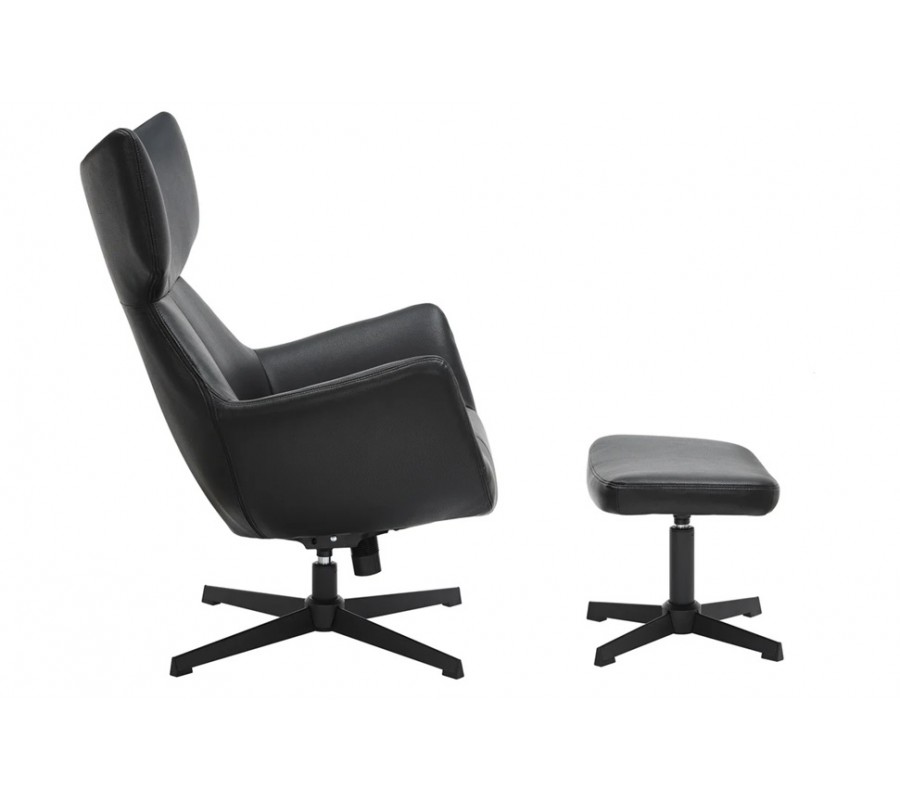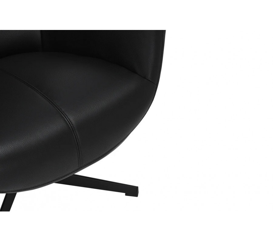 Podstava je také vyrobena v černé barvě a dodává nábytku industriální vizuál. Valcovitá noha z kovu se ve spodní části rozvětvuje do čtyř ramen, která zajišťují výbornou stabilitu. V její vrchní části se nachází mechanismus pro otočení sedáku o 360°. Sedadlo lze také zaklánět pro ještě větší komfort.