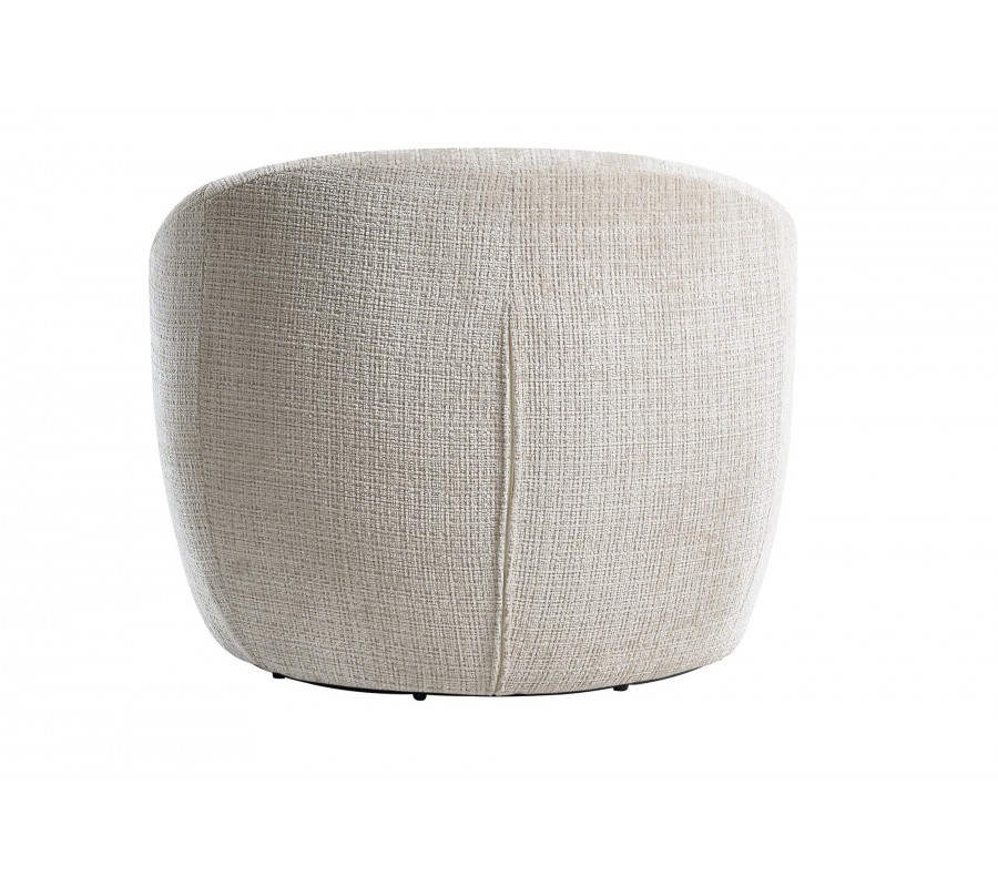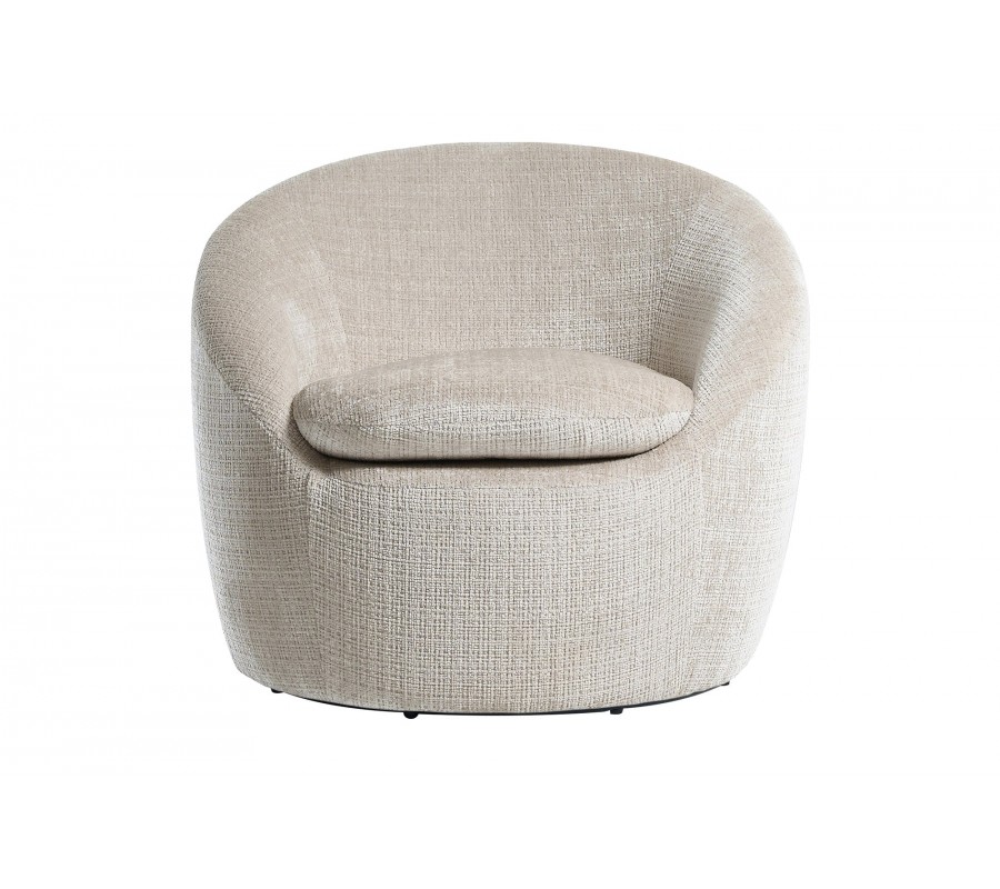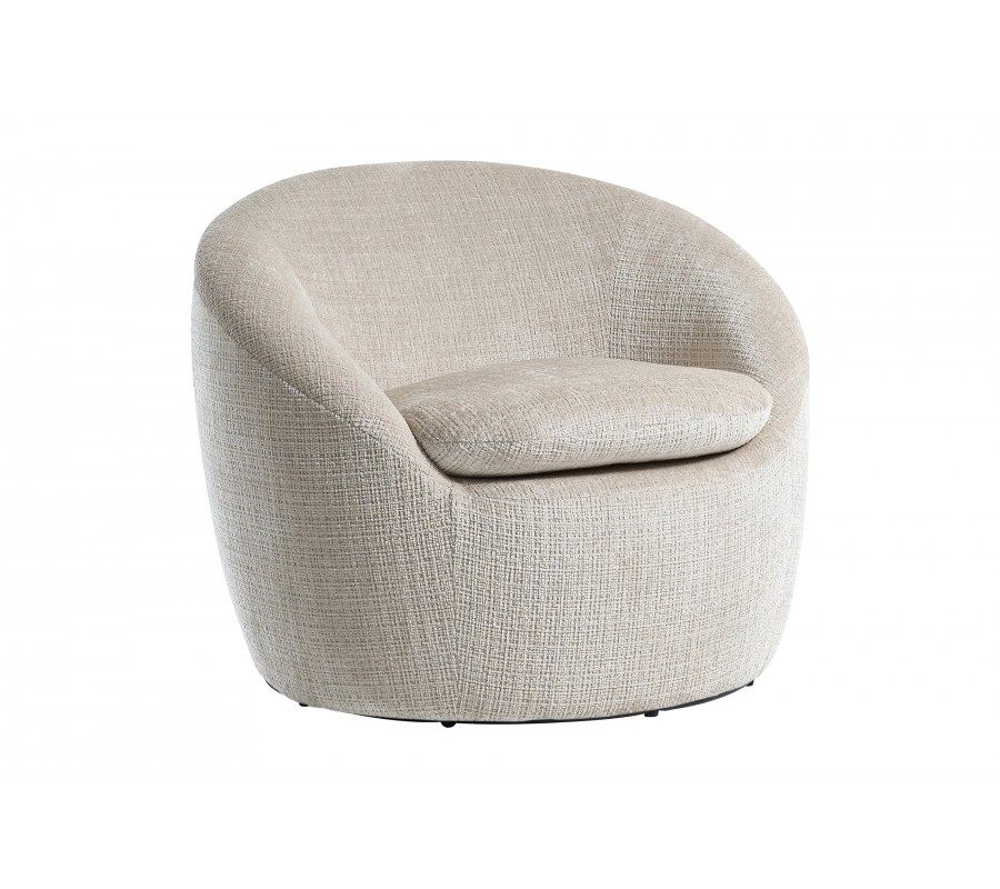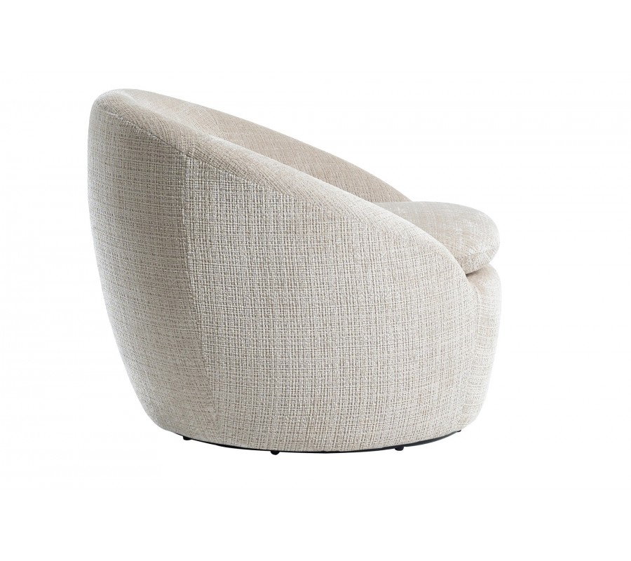 Křeslo má kulatý tvar s plnou podstavou bez nožiček. Pohodlí zaručí obdélníkový sedací polštář. Vyšší zádová opěrka přechází v plynulé křivce do nižších bočních stran. Ve spodní části je diskrétně umístěn mechanismus umožňující otáčení křesla o 360°. Zaoblená silueta v kombinaci s celoplošným potahem působí elegantním plynulým dojmem.