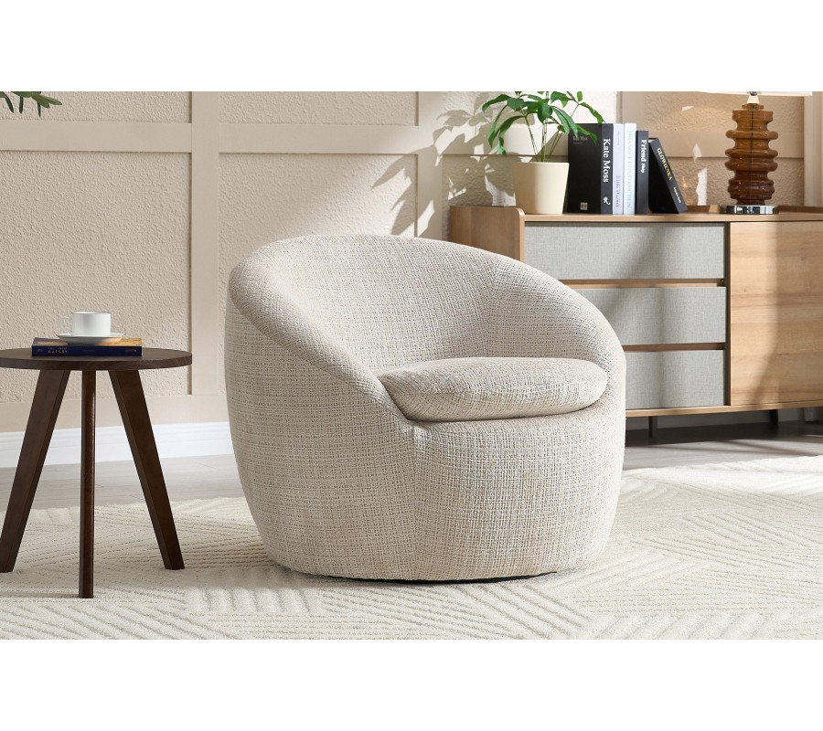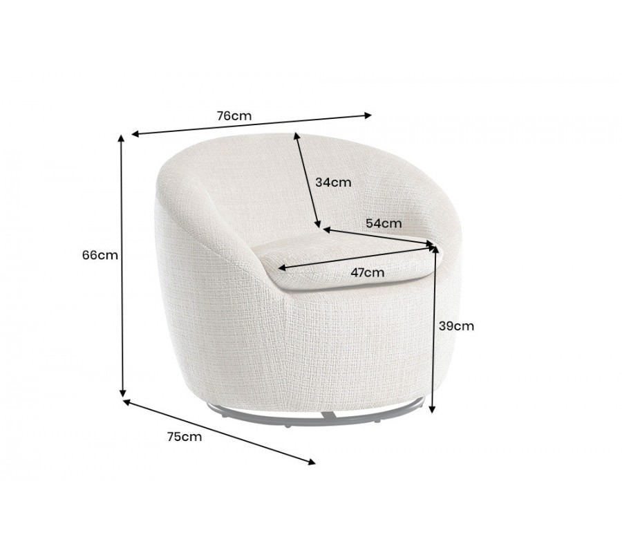 Moderní otočné kulaté křeslo Elian s čalouněním a potahem ze strukturované látky v béžové barvě 76 cm