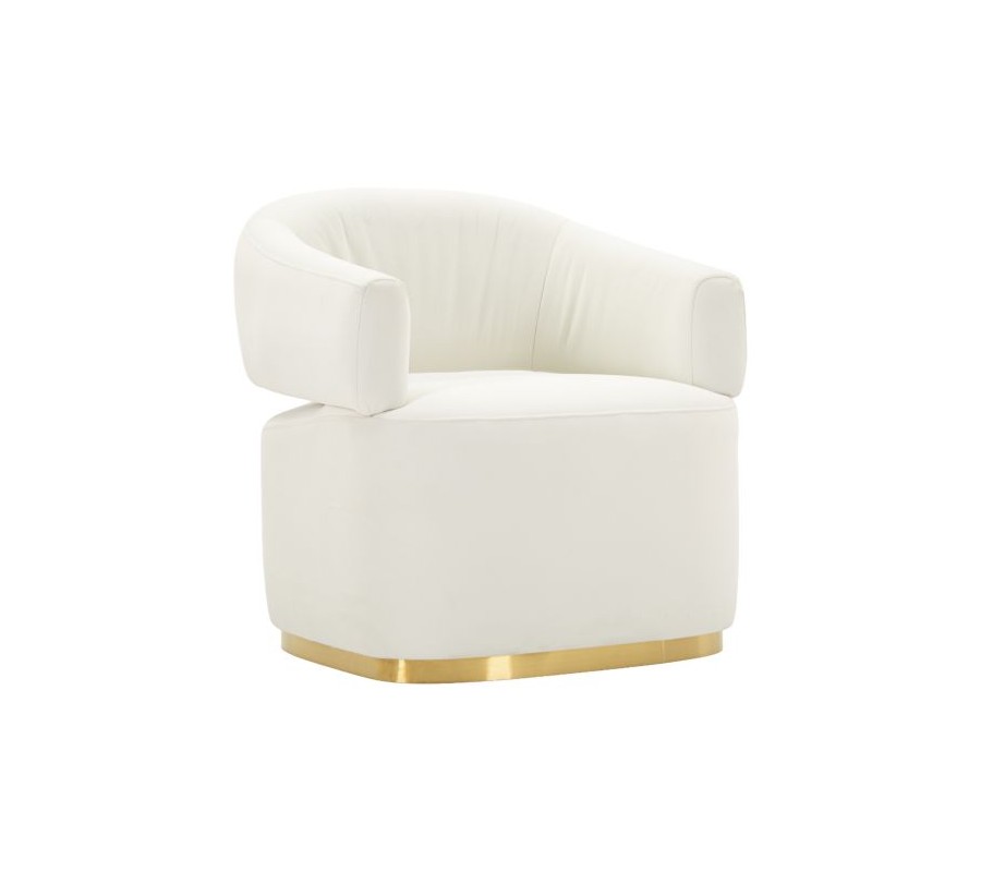 Dominantním prvkem je kovová zlatá podstava, která křeslu dodává glamour vzhled a zároveň jej vizuálně odlehčuje. Díky tomuto detailu se křeslo výborně hodí do luxusních obýváků, designových apartmánů, reprezentativních salonů, hotelových lobby či elegantních beauty a fashion studií, kde může sloužit jako výrazný dekorativní prvek i komfortní sezení.