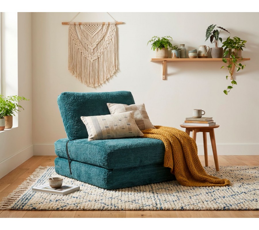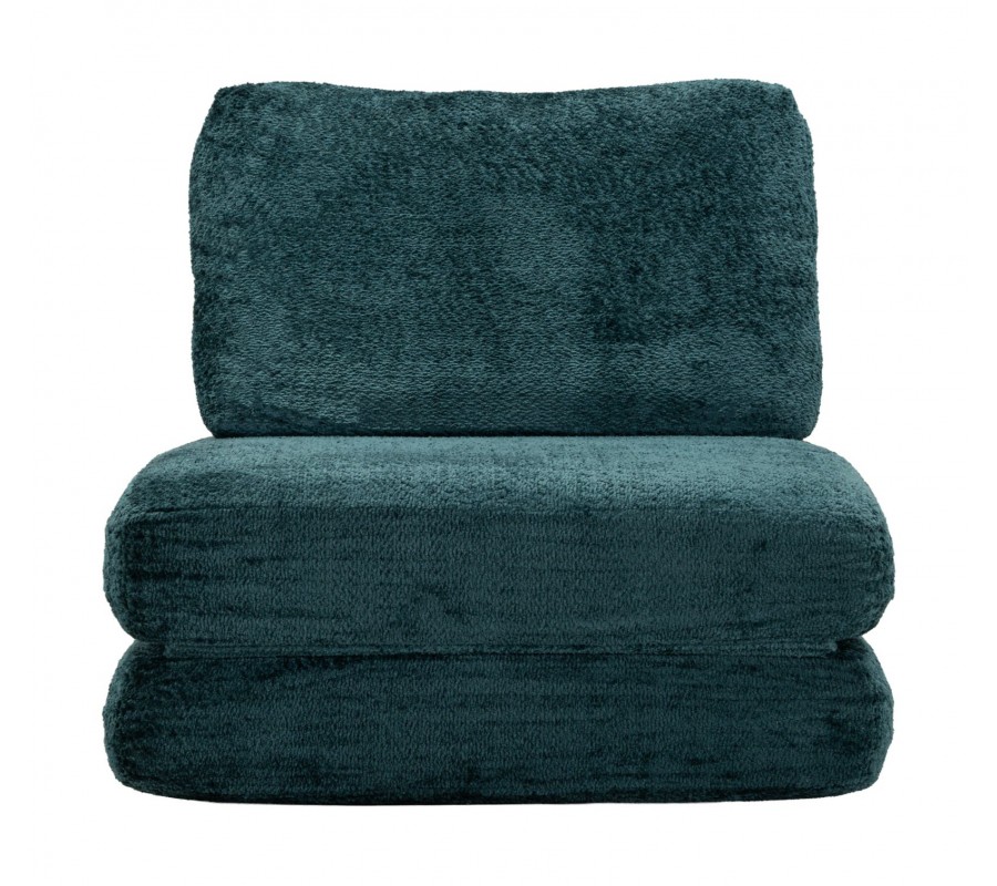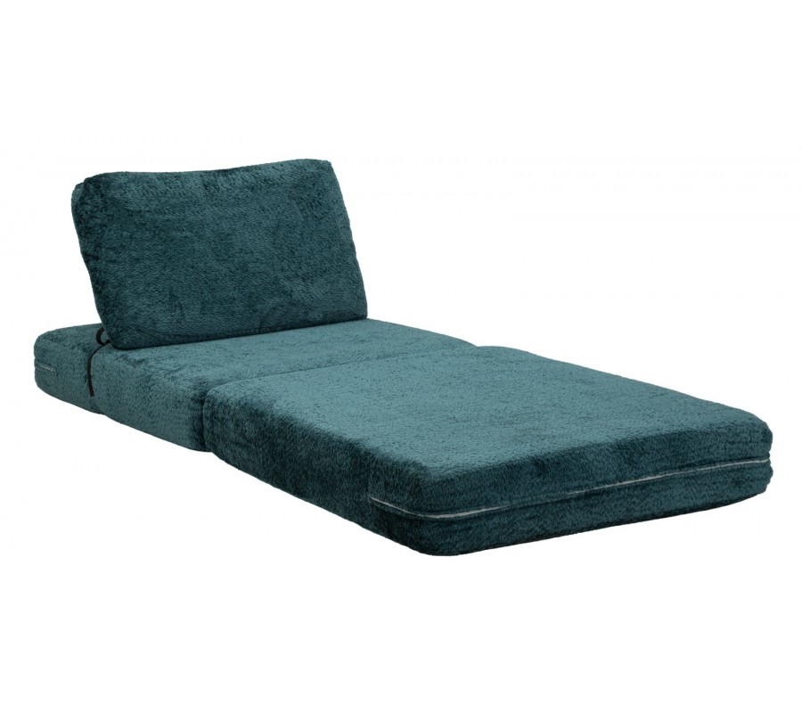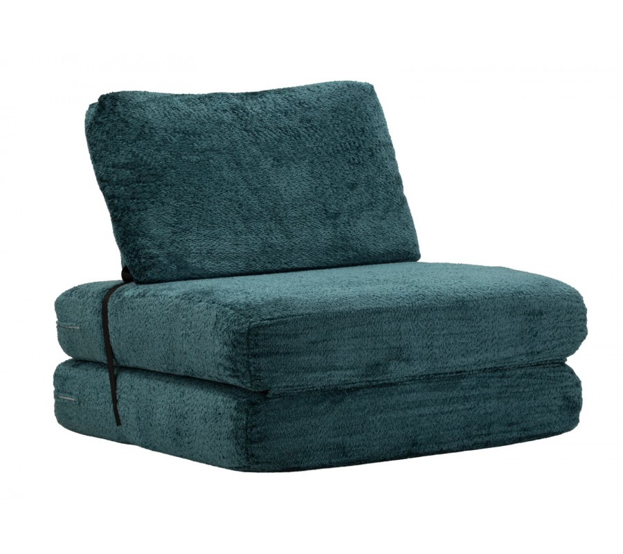 Designové čalouněné modré rozkládací křeslo Raffai s plyšovým potahem a obdélníkovým opěradlem 100 cm