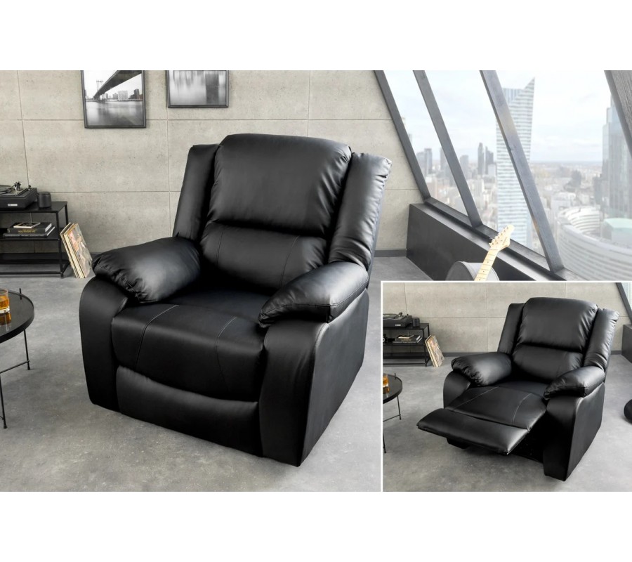 Moderní čalouněné rozkládací kino křeslo Phoenix v černé barvě z eko kůže 104 cm