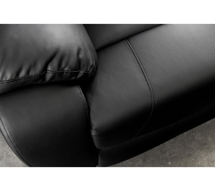 Křeslo je čalouněno potahem zeko kůže, který má hladký kožený vzhled, je příjemný na dotek a nenáročný na údržbu.Černá barva dodává křeslu sofistikovaný, moderní charakter a činí z něj výrazný prvek interiéru. Měkké čalounění sedáku, opěradla i opěrek rukou poskytuje komfortní oporu při delším sezení, sledování filmů nebo odpočinku.