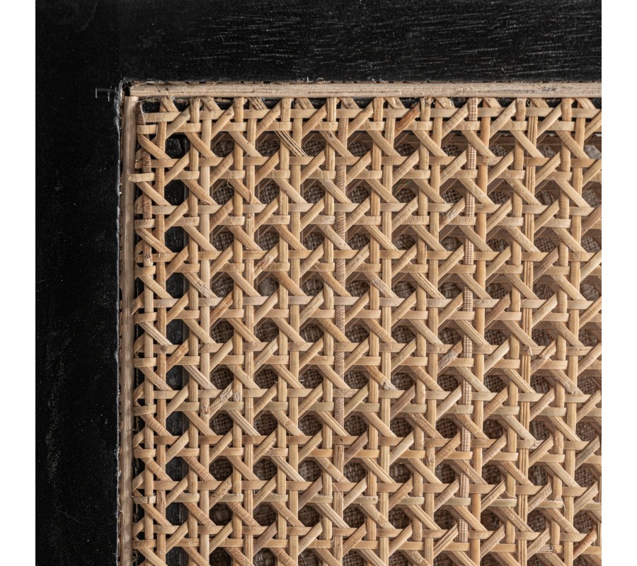 Luxusní art deco ratanové čalouněné křeslo Jufam je harmonickým spojením přirozených materiálů, řemeslné estetiky a nadčasového designu. Konstrukce z masivního mangového dřeva v elegantní černé povrchové úpravě vytváří pevný, lehkostí výpletu a jemností čalounění.