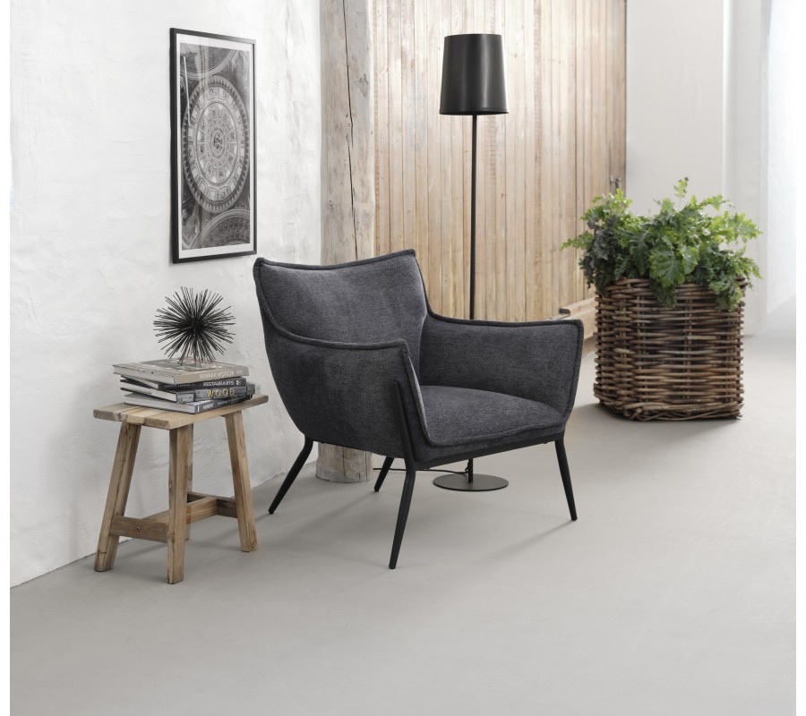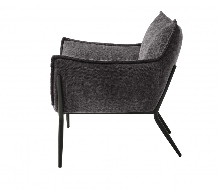 Moderní industriální křeslo Beryl se tmavým šedým čalouněním a černýma kovovými nohami 83 cm