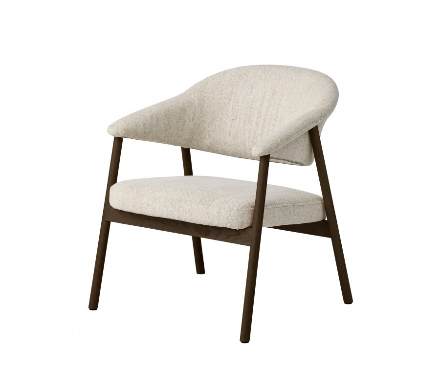 Moderní severské křeslo Bodil s čalouněným sedátkem a opěrkou v krémové barvě s tmavou hnědou dubovou konstrukcí 69 cm