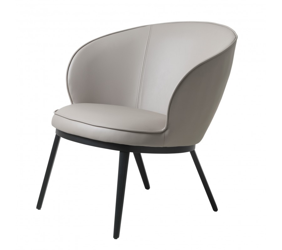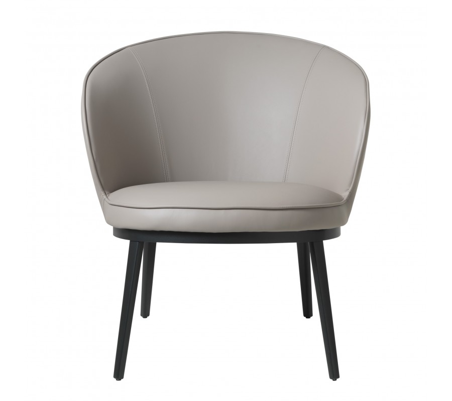 Moderní industriální křeslo Gamla s hnědosivým koženým potahem v odstínu taupe s černou kovovou podstavou 73 cm