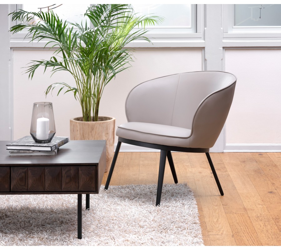 Křeslo Gamla zaujme na první pohled svou elegantní, moderní siluetou s jemným industriálním nádechem. Barevné provedení v odstínu taupu působí sofistikovaně a mohutnázaoblená opěrka zaručí vysoký komfort.
