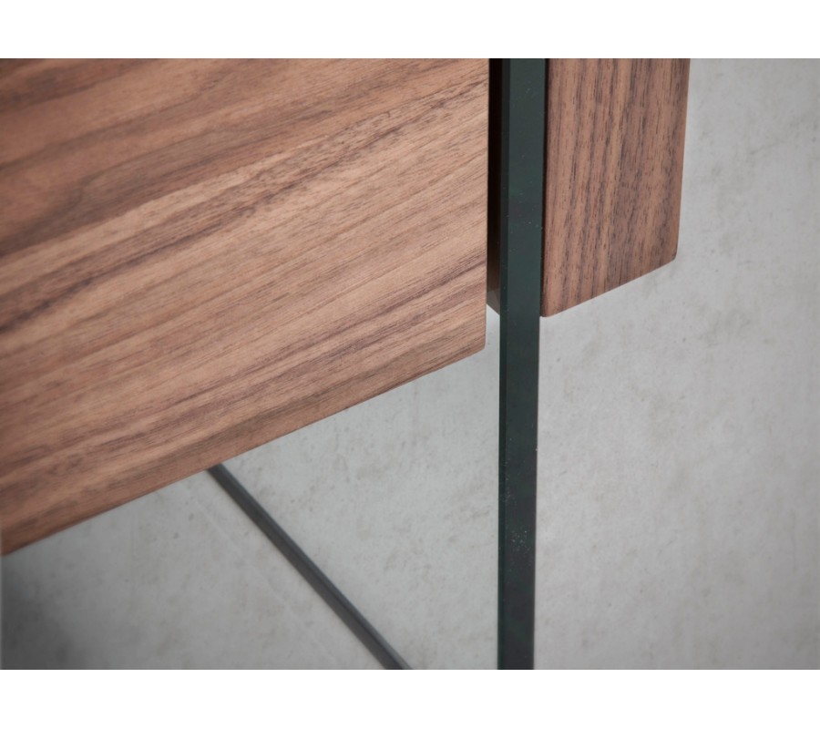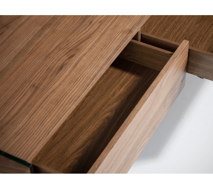 Konferenční, televizní a příruční stolek propojuje minimalistický lineární design a hladké povrchy. Zajímavé řešení nožiček v podobě plátů tvrzeného skla zdůrazňuje v kombinaci s chromovými nožičkami sedaček moderní styl. Oceníte také bohatý uzavřený úložný prostor, který poskytuje dostatek místa pro uskladnění předmětů každodenní potřeby. Obývací pokoj tak bude působit čistě a nepřeplněně, ale vše co potřebujete, budete mít k dispozici.