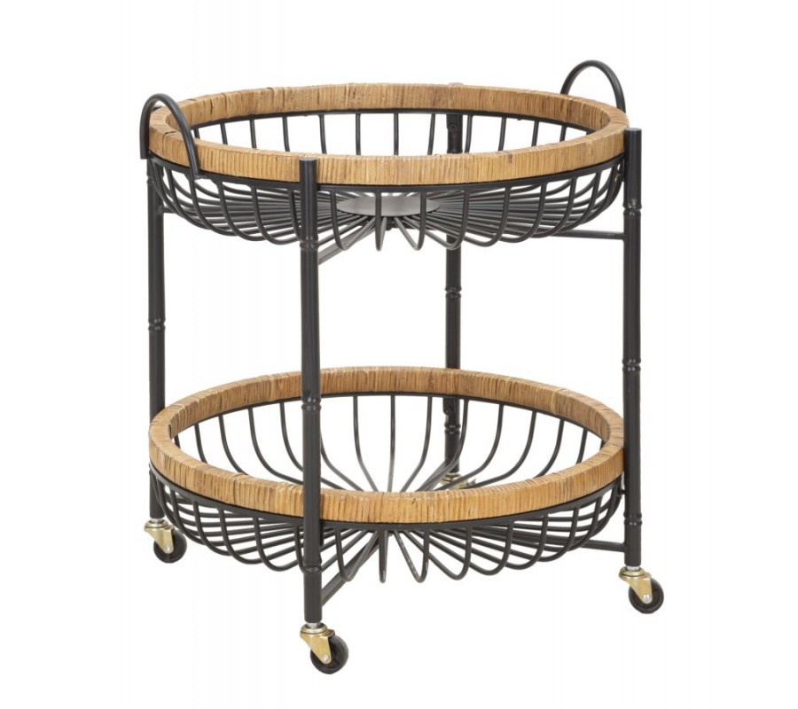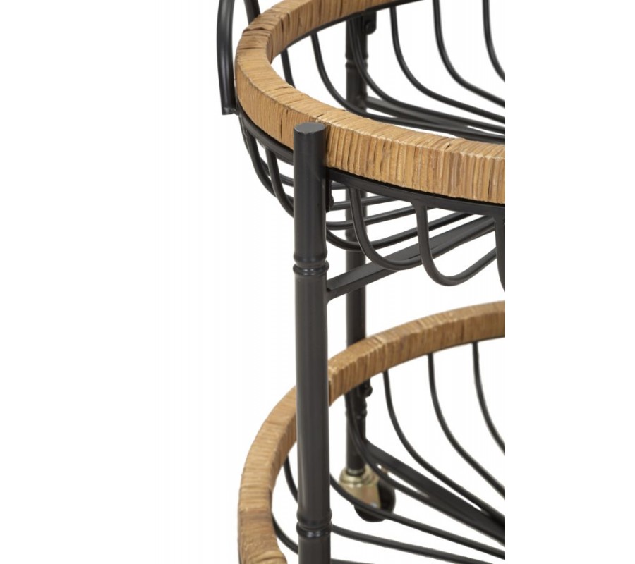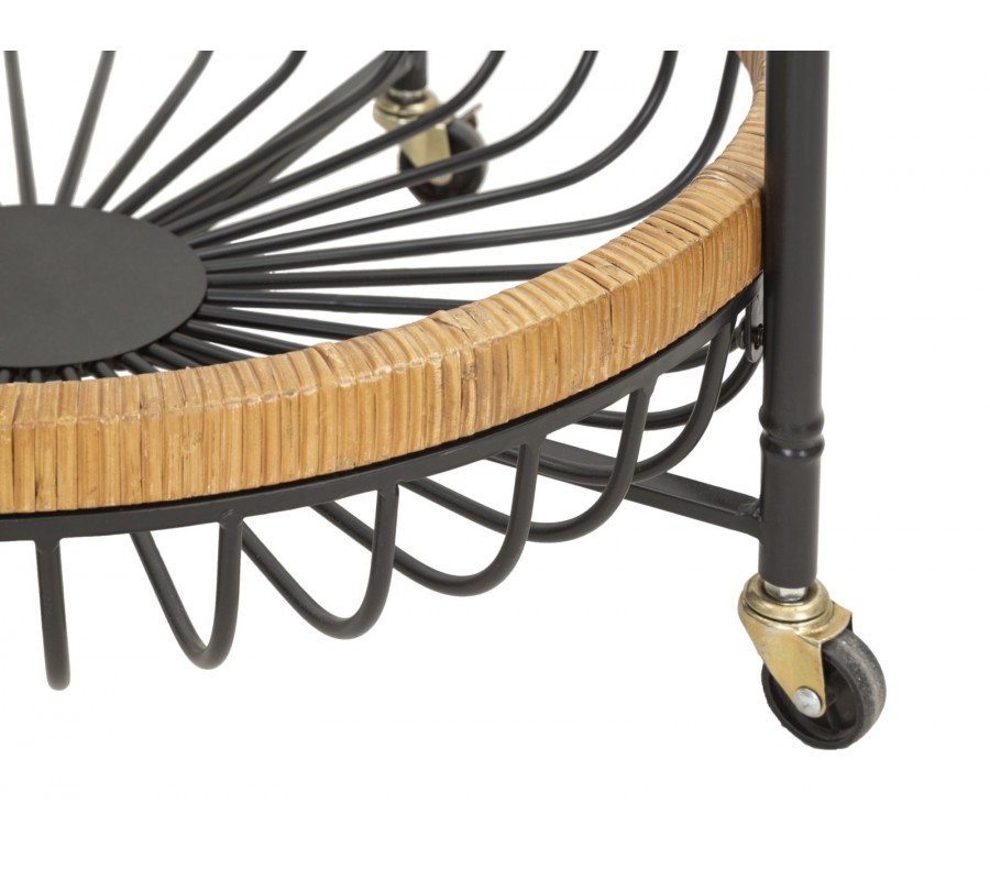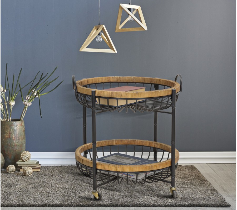Rám oboch poličiek je vyrobený z ratanu, ktorý je ručne omotaný, čím dodáva stolíku prírodný a uvoľnený vzhľad. Nožičky jsou vybaveny praktickými kolečky, díky kterým se stolek snadno přesouvá a lze jej využít i jak servírovací vozík.