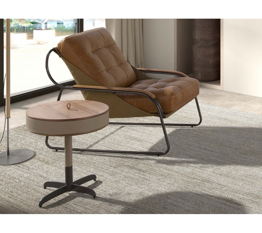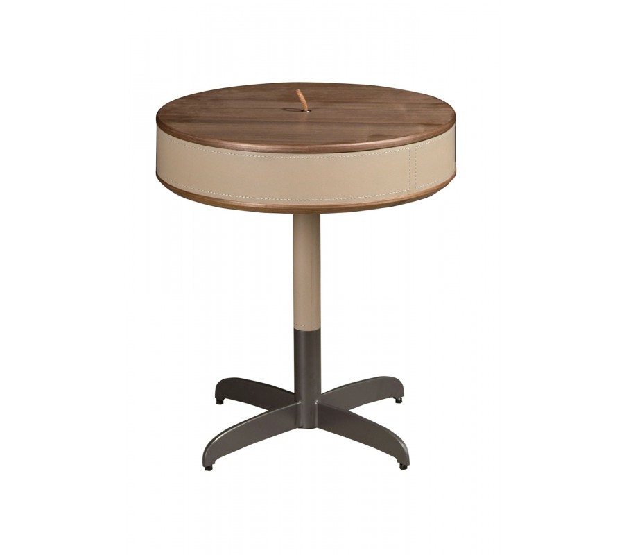 Kontrast dřeva, kůže a kovu vytváří originální vizuální efekt, který působí zároveň moderně i útulně. Precizní zpracování, kombinované s praktickými detaily, činí z tohoto stolku výrazný prvek každého interiéru.