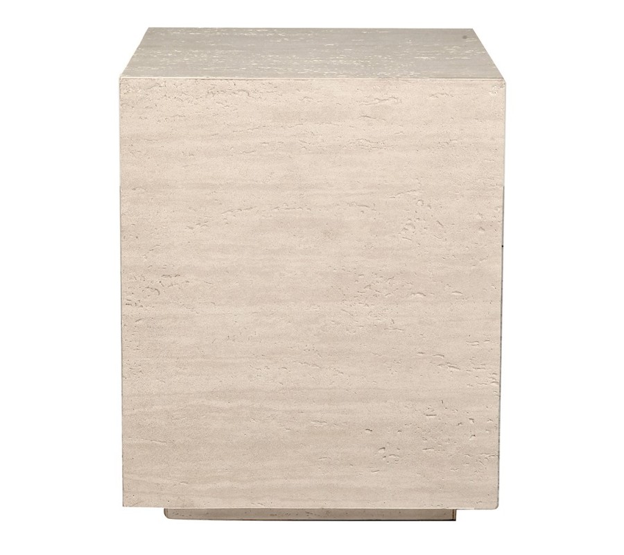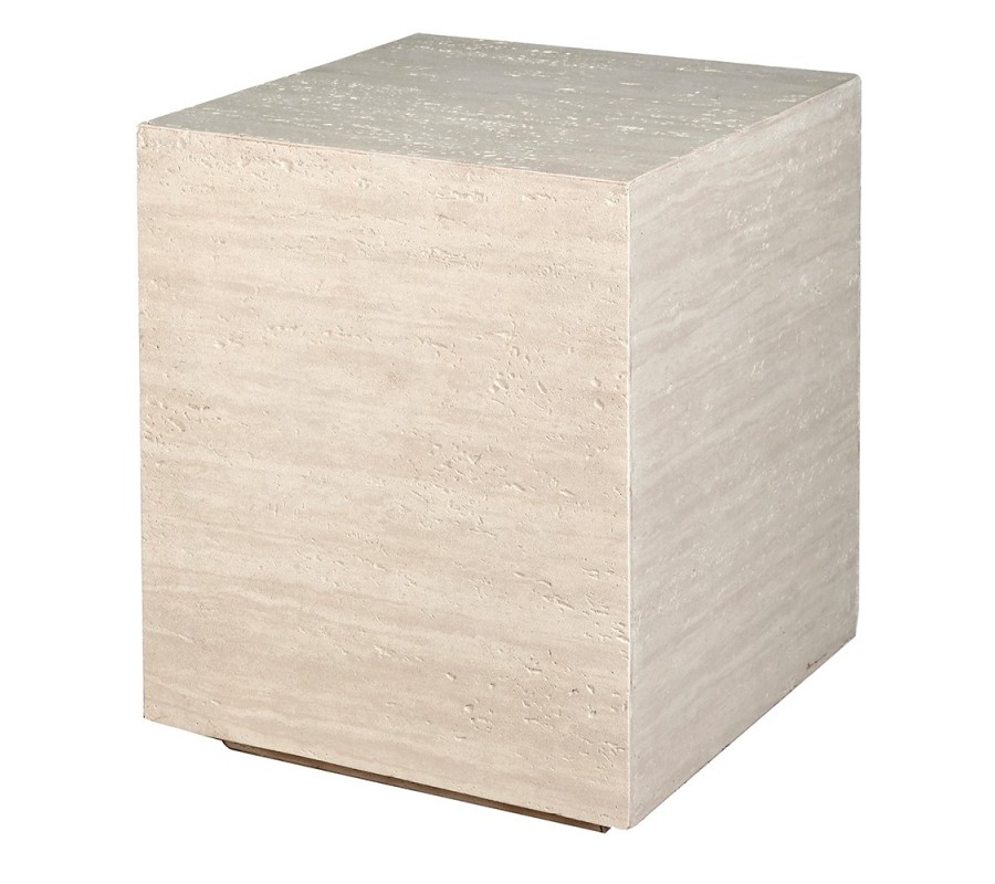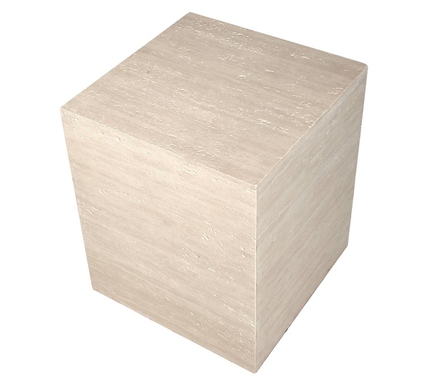 Moderní mramorový příruční stolek Cube Travertino v krémovém odstínu v obdélníkovém tvaru 50 cm