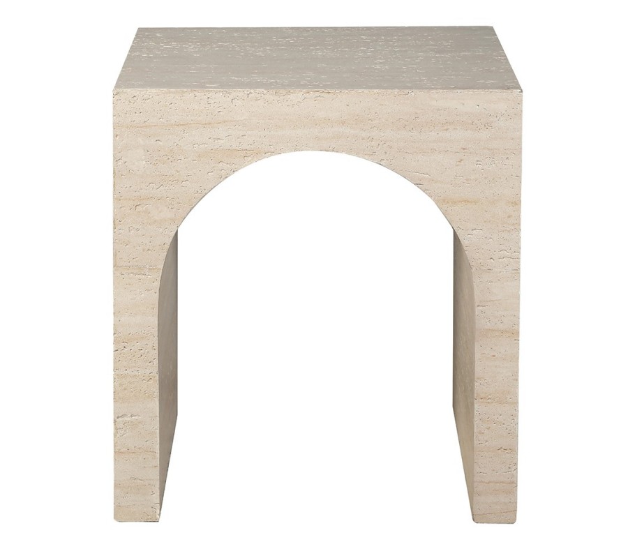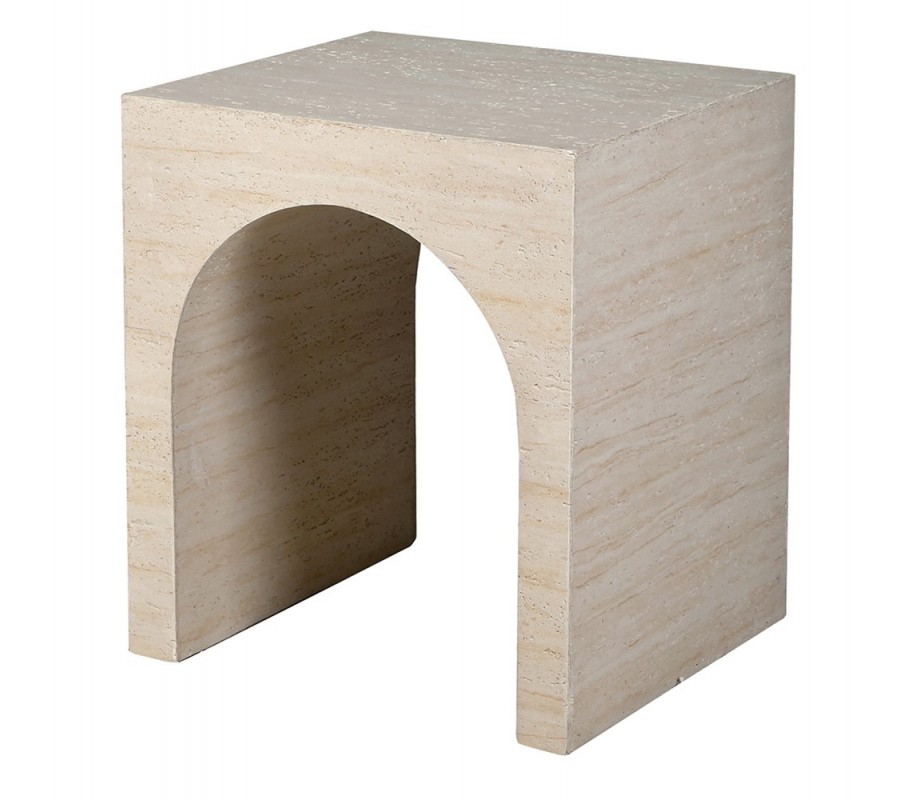 Moderní mramorový příruční stolek Cube Travertino s obloukovým designem v krémové barvě 52 cm