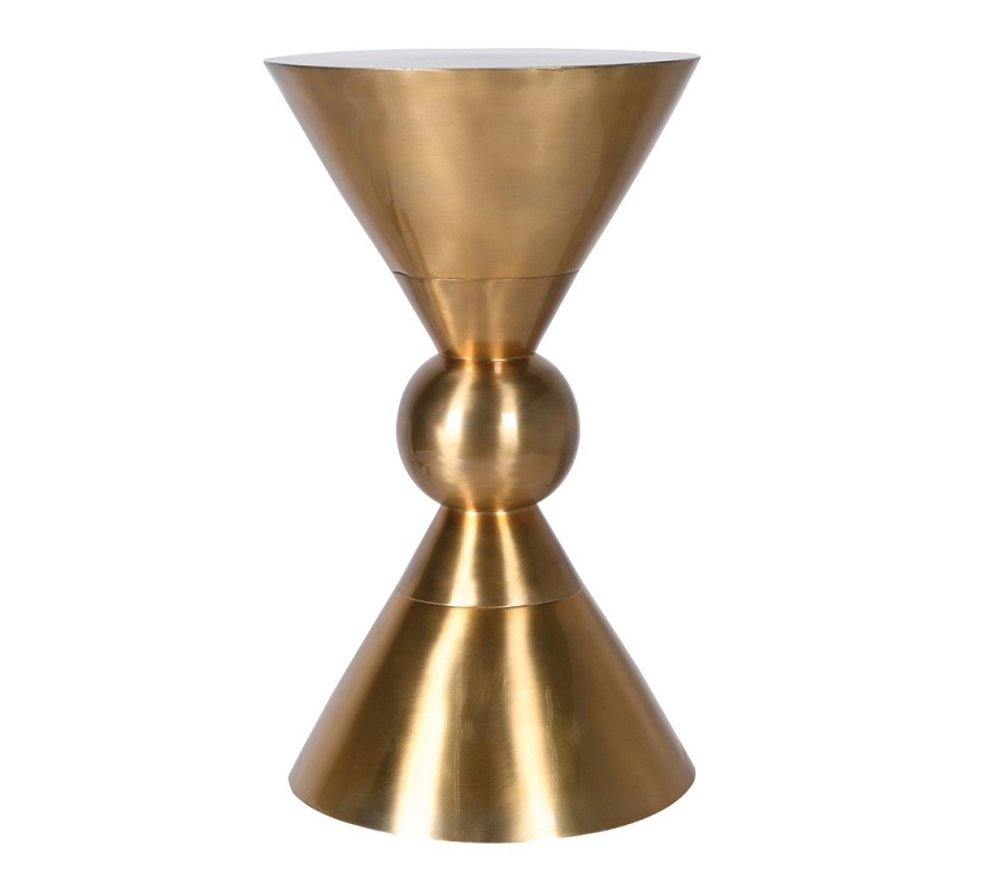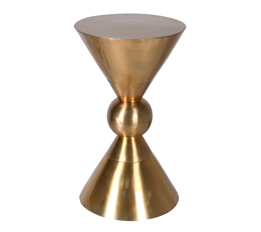 Glamour kulatý příruční stolek Leandro ve tvaru přesýpacích hodin s dekorativní koulí v antické zlaté barvě 55 cm
