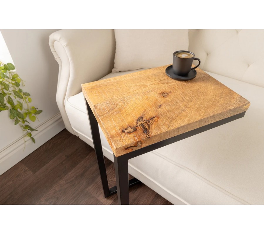 Industriální příruční stolek Mango Natur z hnědého mangového dřeva a černou kovovou konstrukcí 62 cm