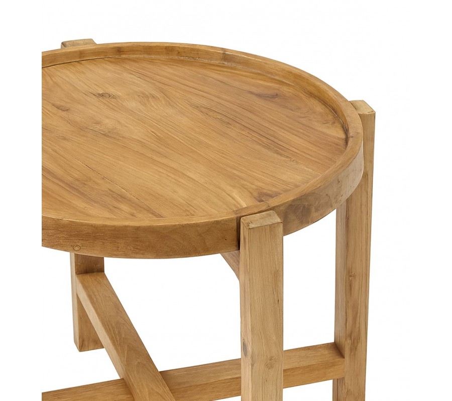 Venkovský příruční stolek Madero z masivního recyklovaného teakového dřeva ve světle hnědé barvě je jedinečný přírodní kousek, který spojuje řemeslnou kvalitu a naturální venkovský šarm.