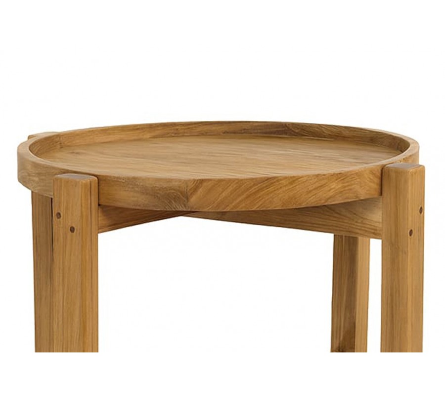Teakové dřevo je mimořádně pevné a husté. Jeho přirozená kresba dřeva dodává stolku charakter, jemné odstíny a originální barevné přechody dělají stolek jedinečným kusem nábytku. Stolek je ručně vyroben, proto se mohou vyskytnout drobné odchylky, které podtrhují jeho autenticitu.