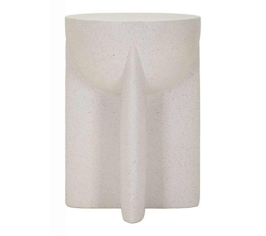 Moderní kulatý šedý příruční stolek Carlos s geometrickou skulpturální siluetou a kameninovým designem 34 cm