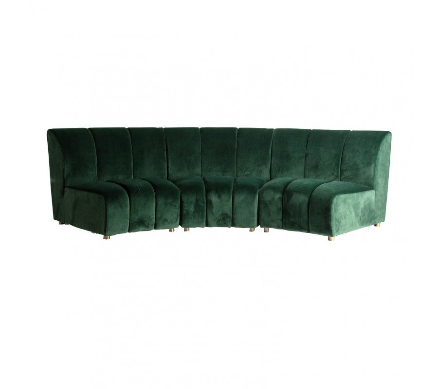 Jedinečná sedačka Kleandro ve stylové zelené barvě je skvělým doplňkem do každého moderního interiéru. Příjemný povrch ze sametu se postará o váš stoprocentní komfort a zpříjemní vaše chvíle oddechu. Šířka 109cm je vhodná pro jednoho člověka, ale je možné uložit několik sedaček vedle sebe a vytvořit větší pohovku zajímavého vzhledu, která zaručeně zaujme už na první pohled. Zelená barva potahu v kombinaci se zlatými nožičkami působí velmi stylově a ve vašem moderním obýváku skvěle vynikne. Doporučujeme kombinovat se zlatými doplňky.