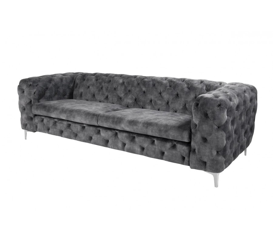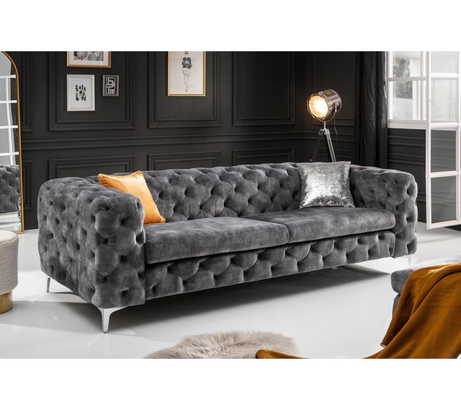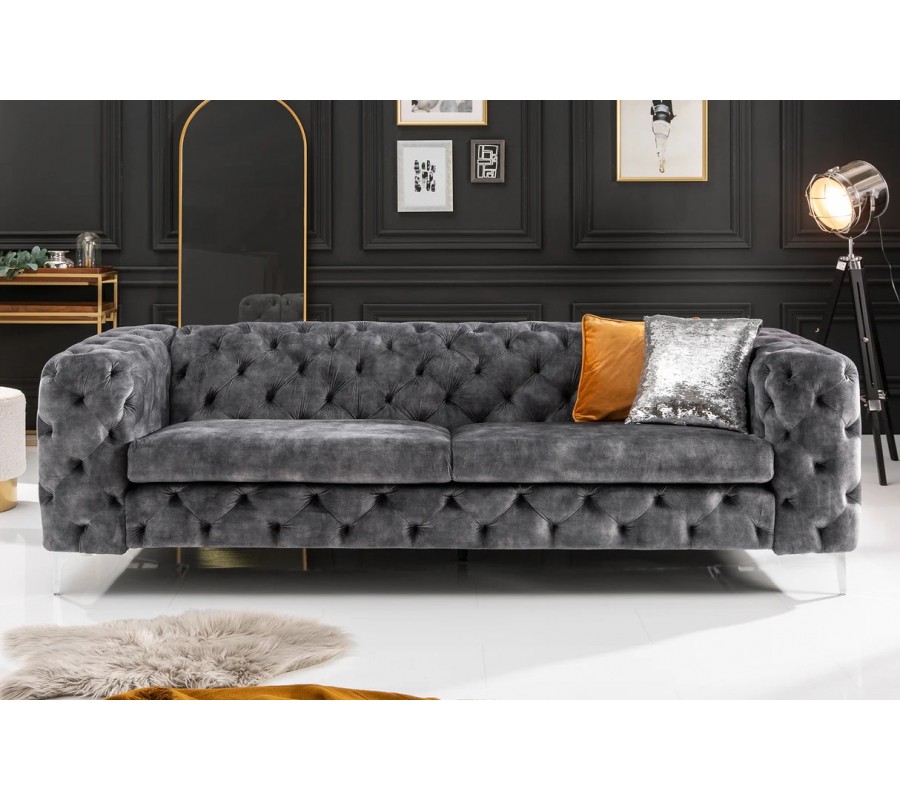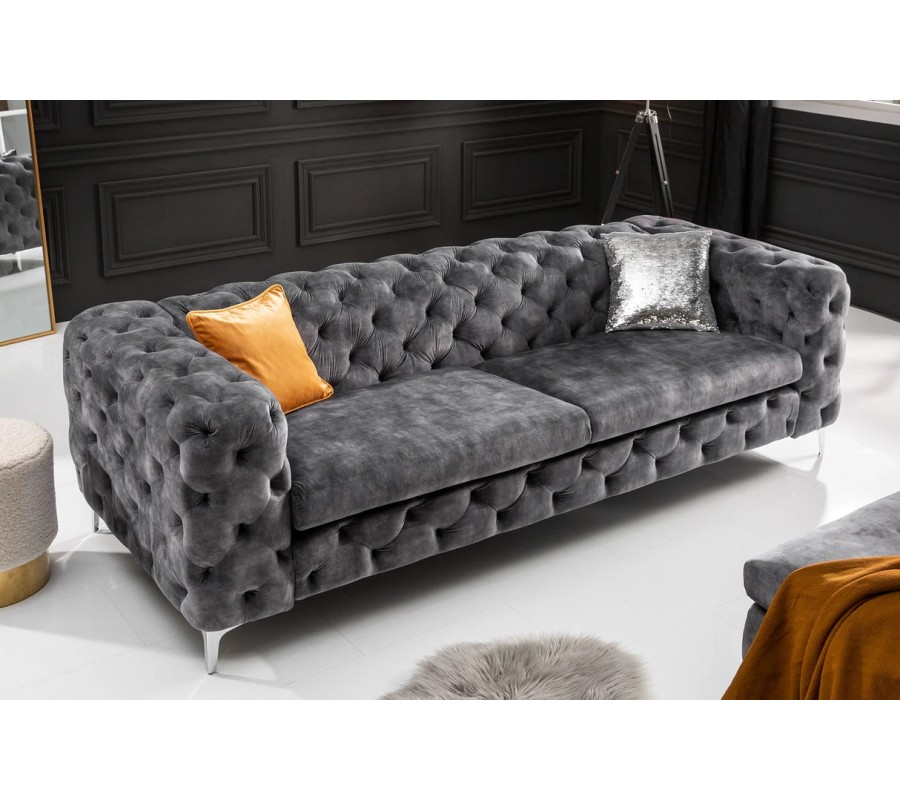 Luxusní chesterfield třímístná sedačka Modern Barock v tmavě šedé barvě se sametovým potahem 240cm