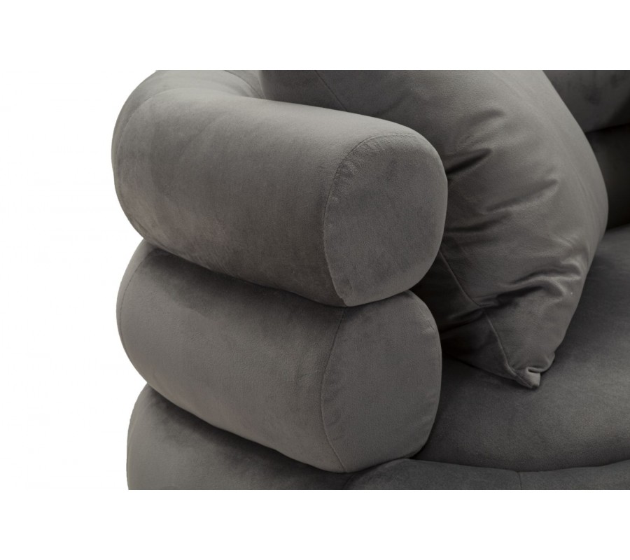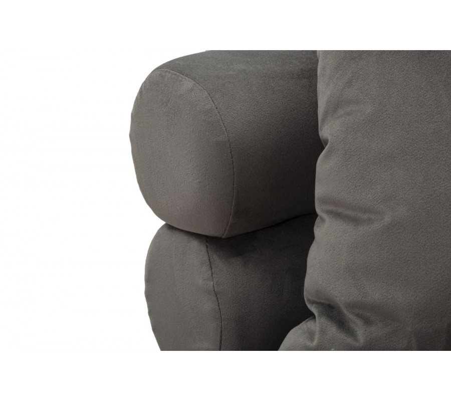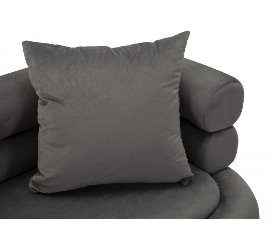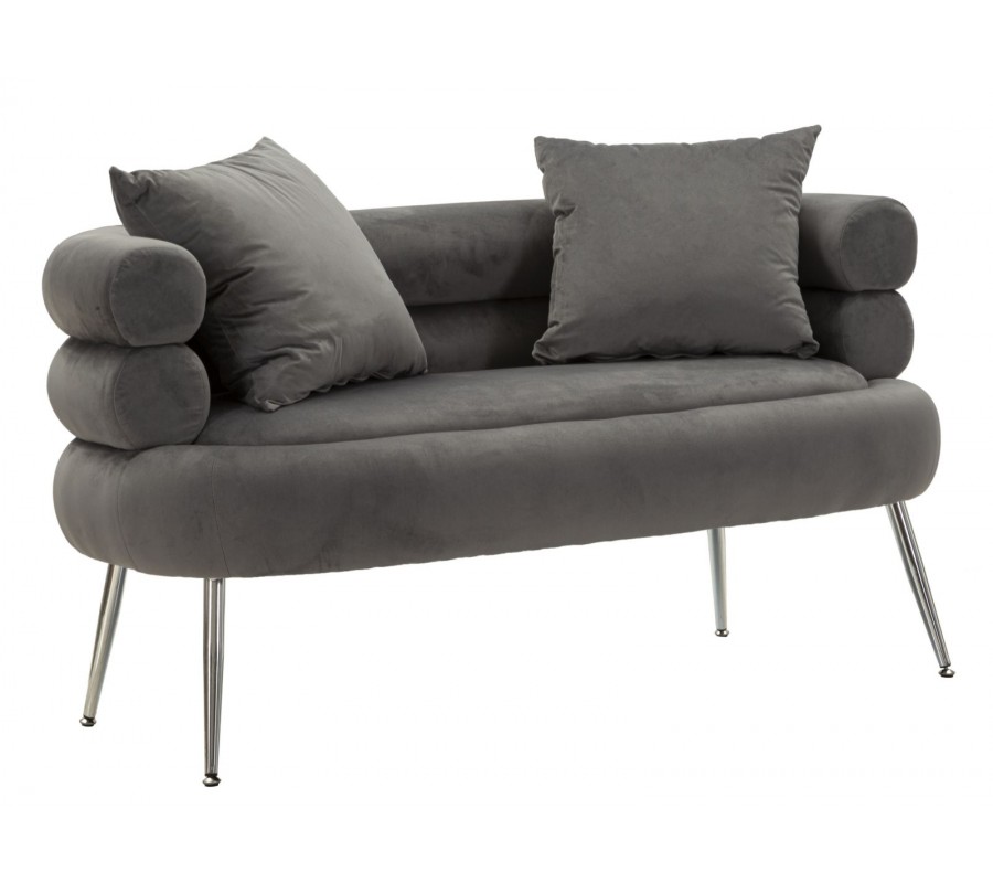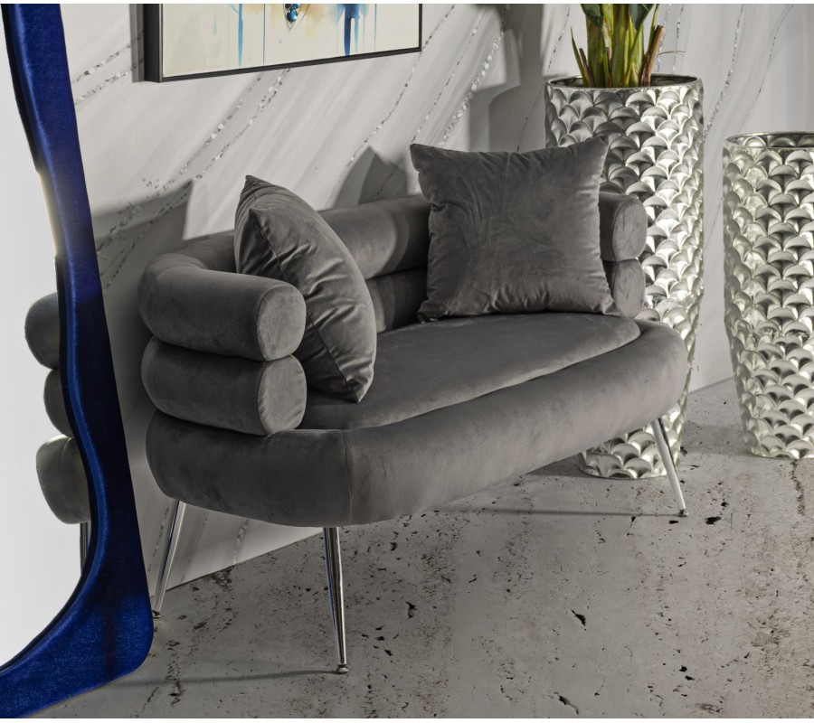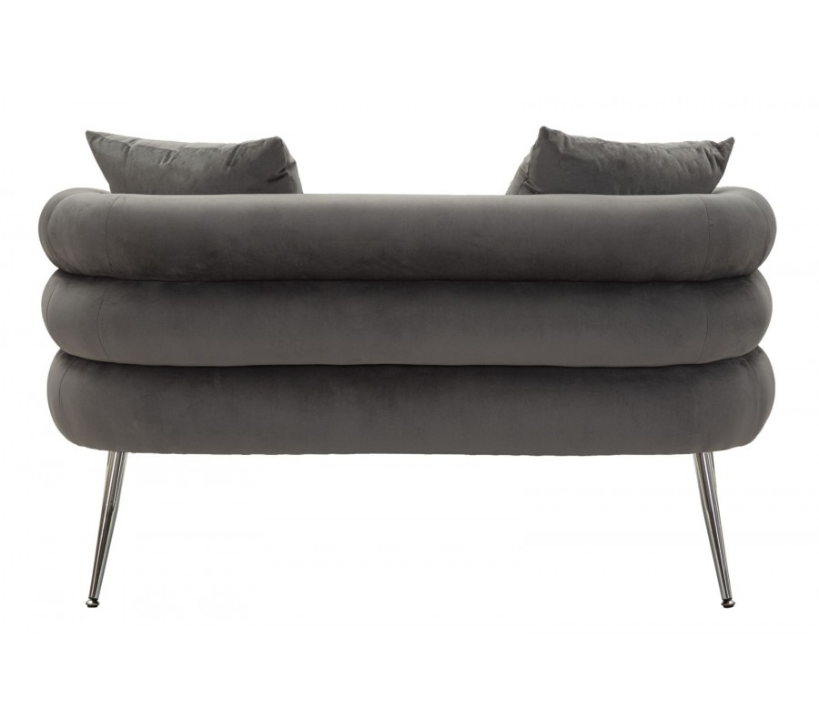 Art deco čalouněná sedačka Taglia s designovou opěrkou a dvěma polštáři s šedým sametovým potahem 133 cm