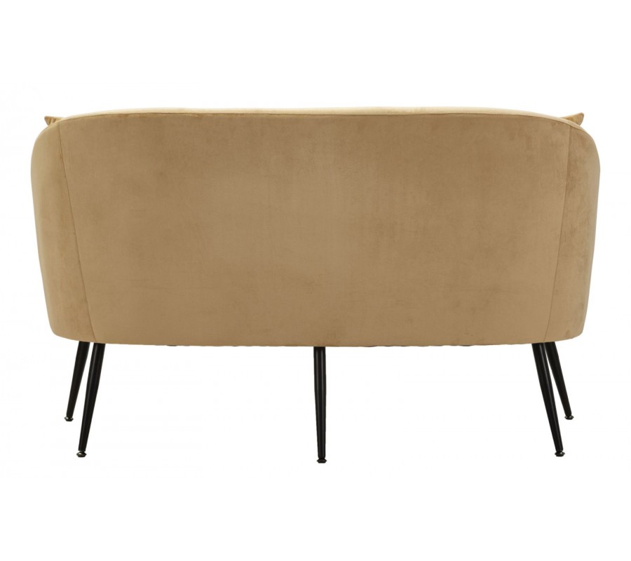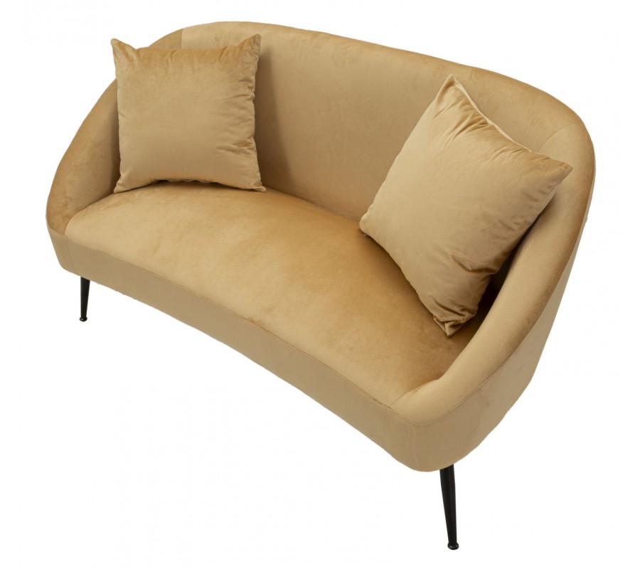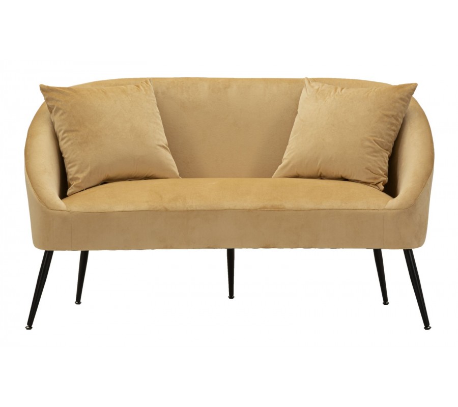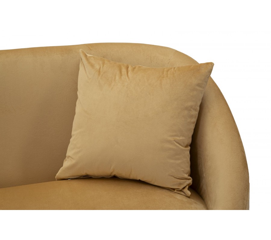 Konstrukce sedačky je vyrobena z kvalitní MDF dýhy a pokryta pěnovou výplní. Textilní potah z mikrovlákna je nenáročný na údržbu a svou okrovou žlutou barvou prostor oživí. Sametový finiš má jemný lesk a dodává nábytku dotek luxusu. Pohodlné opření poskytnou dva čtvercové polštáře ve stejném provedení.