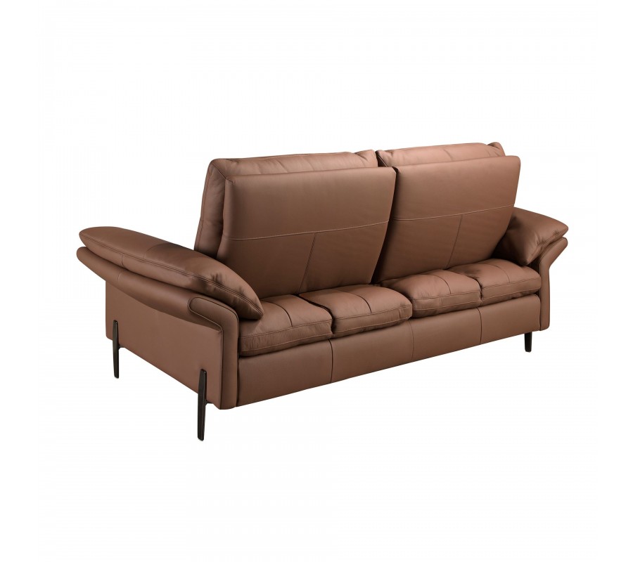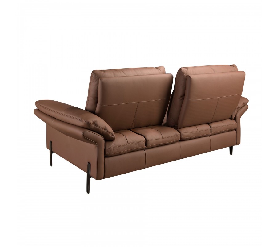 Luxusní kožená dvousedačka Vita Naturale s hnědým potahem s lineárním prošíváním a tmavým chromovým nohama 195 cm
