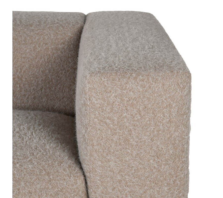 Luxusní moderní sedačka Eleganza je designový kousek, který zaujme svojí čistou linií a nadčasovým charakterem. Má obdélníkový tvar s hranatými rohy, což jí dodává architektonickou přísnost a eleganci. Je čalouněná a potažená v taupé šedé textilie s plstěným designem, která působí měkce, příjemně na dotek a zároveň odolně. Díky svému řešení poskytuje komfortní sezení až pro čtyři osoby.